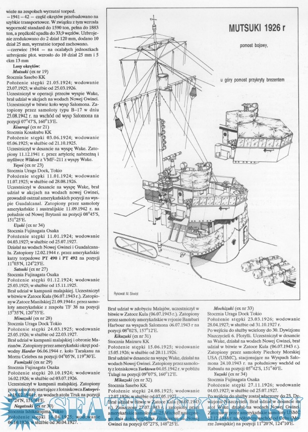 Year: 1996 Language: Polish Author: P. Wisniewski. Genre: Historical Publisher: AJ-Press Edition: Monografie Morskie 04 Format: PDF Quality: Scanned pages Pages count: 44 Description: Książki tej serii zawierają opis historii okrętu, począwszy od założeń projektowych poprzez prototyp aż do ostatecznej jego wersji. Uwzględnione są kolejne przebudowy i remonty, szczegółowe kalendarium okrętu, przebieg bitew, w których uczestniczyła jednostka. Publikacje zawierają również nazwiska kolejnych dowódców. Szczegółowo opisane są malowania i oznakowanie okrętu. Opracowanie ilustrowane jest wieloma zdjęciami i szczegółowymi planami w dużym formacie — w tym przekrojami, rysunkami detali; pokazano także wzory malowań. Opis techniczny okrętu uwzględnia m.in. budowę kadłuba, uzbrojenie, siłownię i kolejne modernizacje okrętu w czasie służby.