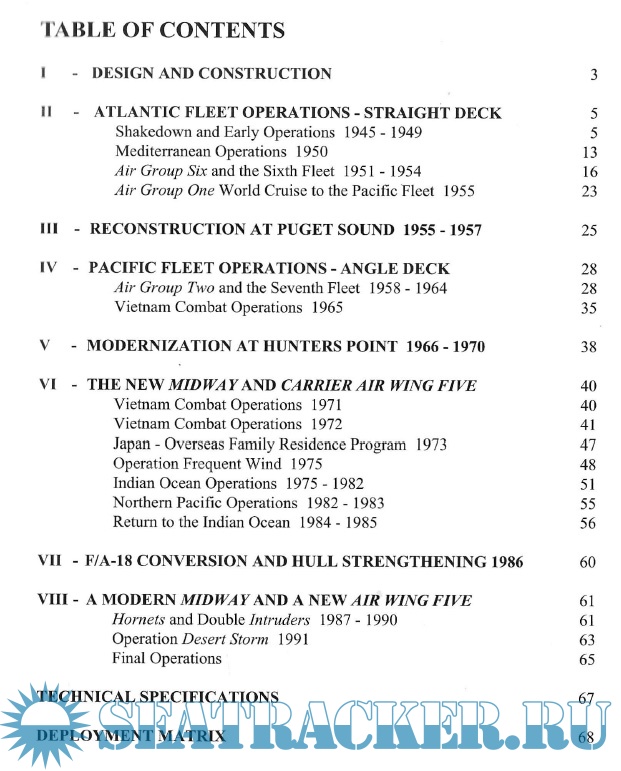 Year: 2013 Language: English Author: Peter Clayton Genre: Historical Publisher: Classic Warships Edition: Warship Pictorial 41 Format: PDF Quality: Scanned pages Pages count: 76 Description: USS Midway (CV-41) is an aircraft carrier, formerly of the United States Navy, the lead ship of her class. Commissioned a week after the end of World War II, Midway was the largest ship in the world until 1955, as well as the first U.S. aircraft carrier too big to transit the Panama Canal. She operated for 47 years, during which time she saw action in the Vietnam War and served as the Persian Gulf flagship in 1991's Operation Desert Storm. Decommissioned in 1992, she is now a museum ship at the USS Midway Museum, in San Diego, California, and is the only remaining inactive U.S. aircraft carrier that is not an Essex-class aircraft carrier.