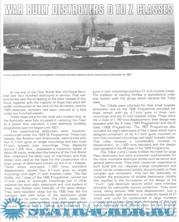 Description: In covering with this volume the O-Z war-built vessels we hope to bring attention to a much neglected destroyer group. It has been popular comment that these classes compare badly with their foreign con¬temporaries but it is not simply size together with torpedo and gun power that constitutes a successful design. Seaworthiness, and above all, reliability, play a vital part, and these were characteristics justly laid claim to by the British destroyers.The Os and Ps in particular are often thought of as the low-water mark of British destroyer design and construction but of all the war-built classes they gave more service during the period of hostilities than any other in spite of their low-angle main armament, which was of doubtful value against aircraft; the paucity of close-range AA guns; and their limited anti-submarine capabilities.The Os and Ps were quickly followed into service by the great mass of the remaining classes, and these ships (along with a number of large pre-war built fleet vessels) made up the bulk of the Home Fleets destroyer force. Operating in the Arctic month after month without respite the qualities of the British destroyer were tested and revealed by the hard grind of operations in northern waters. Their German counter¬parts, although larger and more heavily armed, were simply not equally suitable to the conditions of Arctic operations.