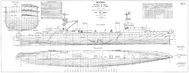 Архивные чертежи французского минного заградителя PLUTON 1929 год