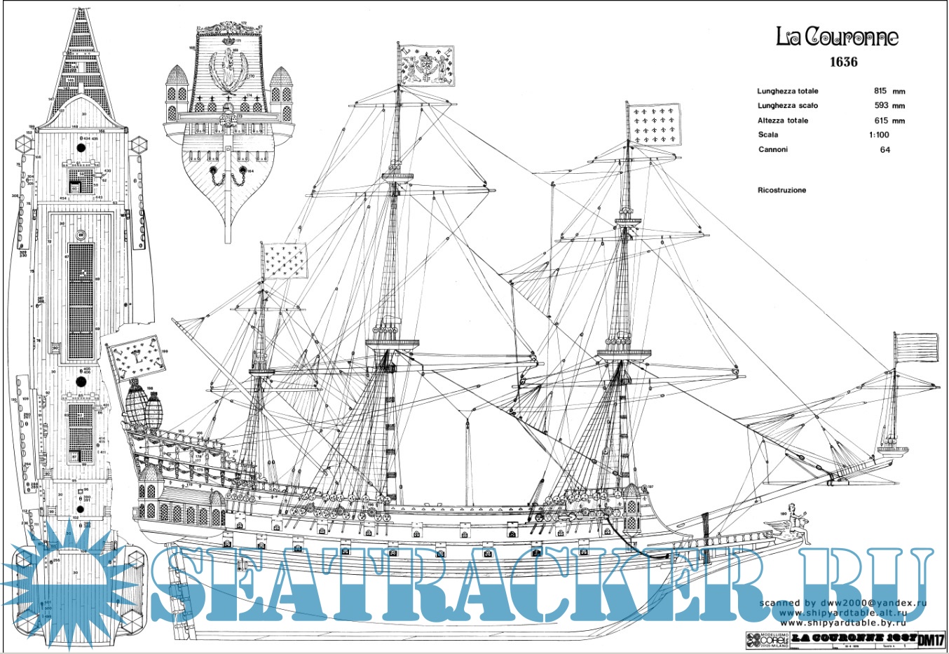 Чертежи и руководство по изготовлению модели парусного корабля La Couronne 1636 год