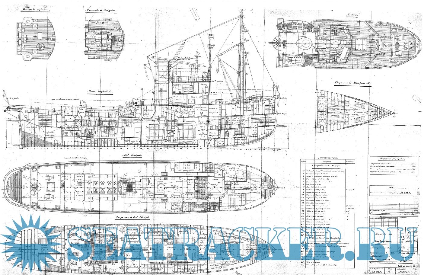 Архивные чертежи французского буксира PACHYDERME 1951 год