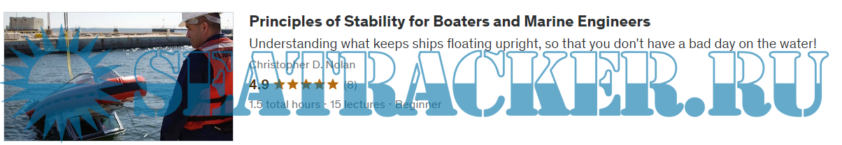 Year: 2023 Author: Udemy (Christopher Nolan) Language: English Playtime: 1:30 Quality: WEB-DL Format: MPEG Video codec: AVC/H.264 Audio codec: AAC Video: 16:9 Audio: 320/48 Description: What you'll learn: - Understand the relationship between the center of gravity and the center of buoyancy - Define traits that make stability better or worse - Understand the righting moment and its impacts on stability - Be prepared for maritime regulatory exams regarding stability