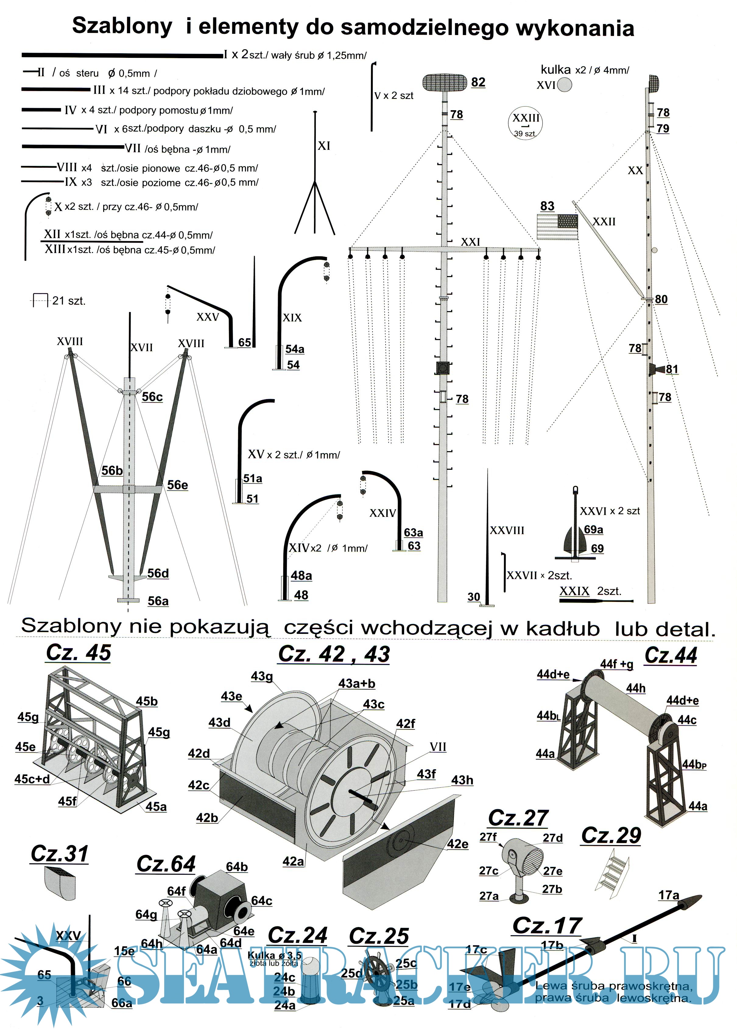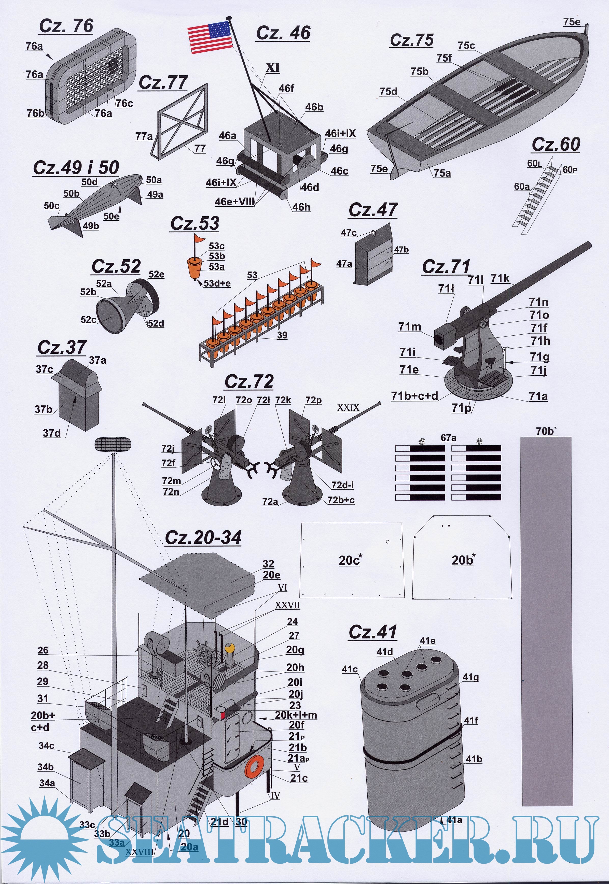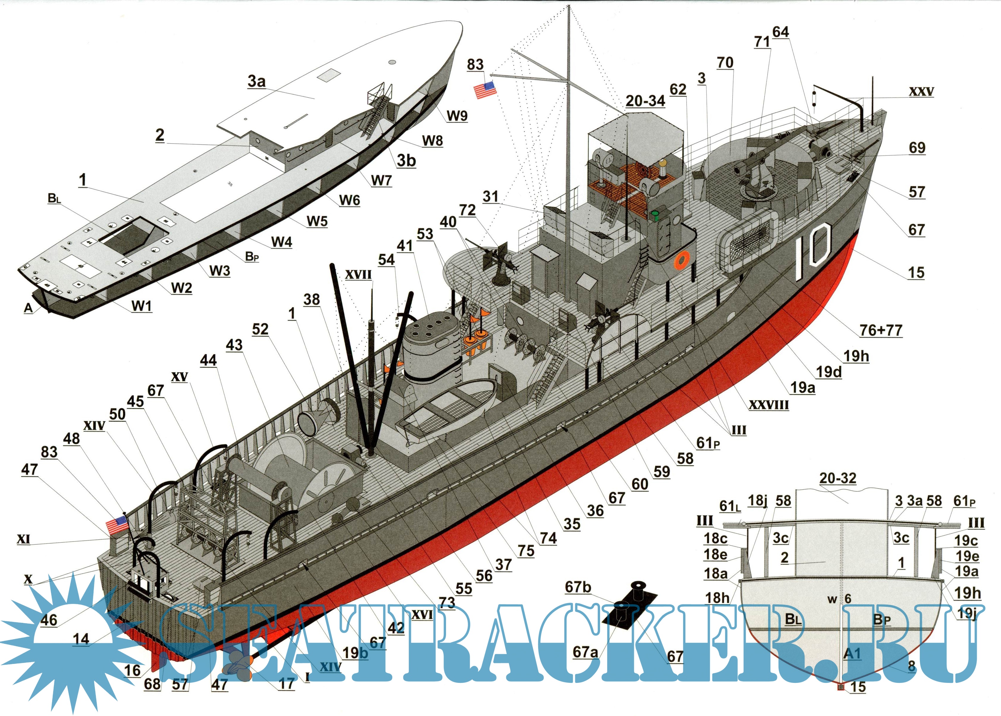 16 листов цветных выкроек и инструкций для изготовления бумажной модели базового тральщика США типа YMS в масштабе 1:100