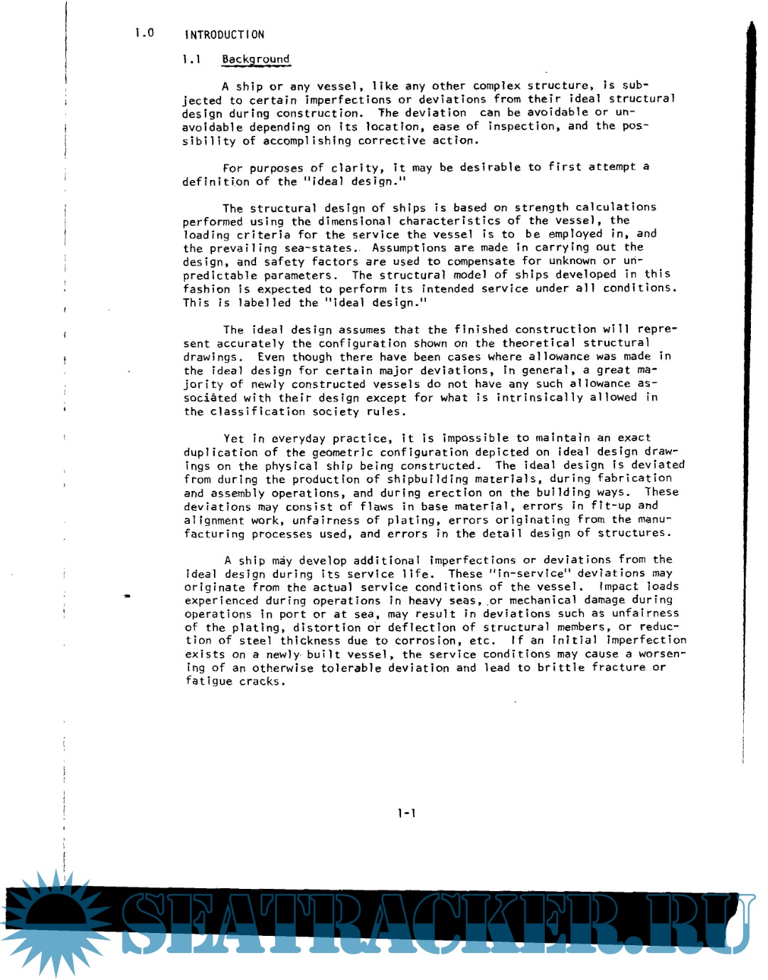 Year: 1978 Language: English Author: Ship Structure Committee Format: PDF Quality: Scanned pages Pages count: 220 Description: With the vast increase in ship size during the past two decades, great emphasis has been placed on reducing hull scantlings through rational determination of loads, working stresses and material properties. TO support an extended use of rational analysis in ship design, it is necessary to determine the deviations from ‘(ideal”’design that can be expected in construction and their effects during the vesselts service life. The Ship Structure Committee initiated a project to deter– mine the factors leading to and the extent of deviation from theoreti- cal design that can be expected. This is the final r’eport of that project and is being pub- lished to assist in developing a rational approach to ship design.