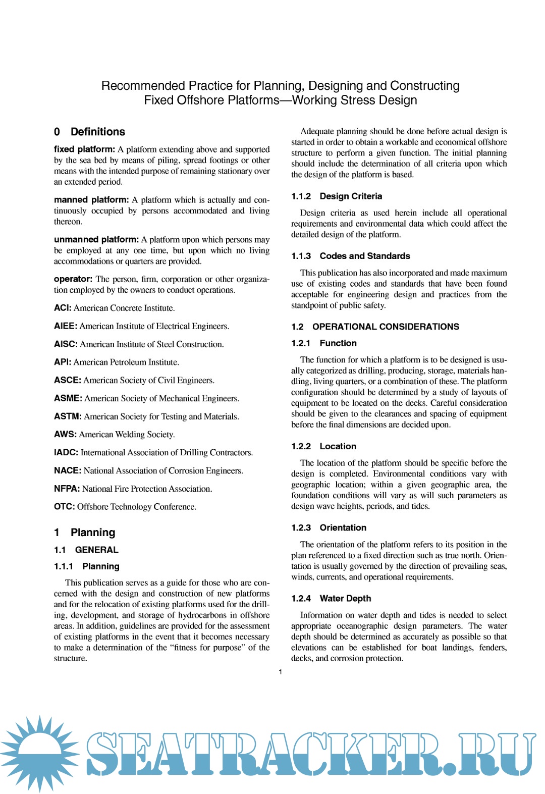 Recommended Practice for Planning, Designing and Constructing Fixed Offshore Platforms - Working Stress Design