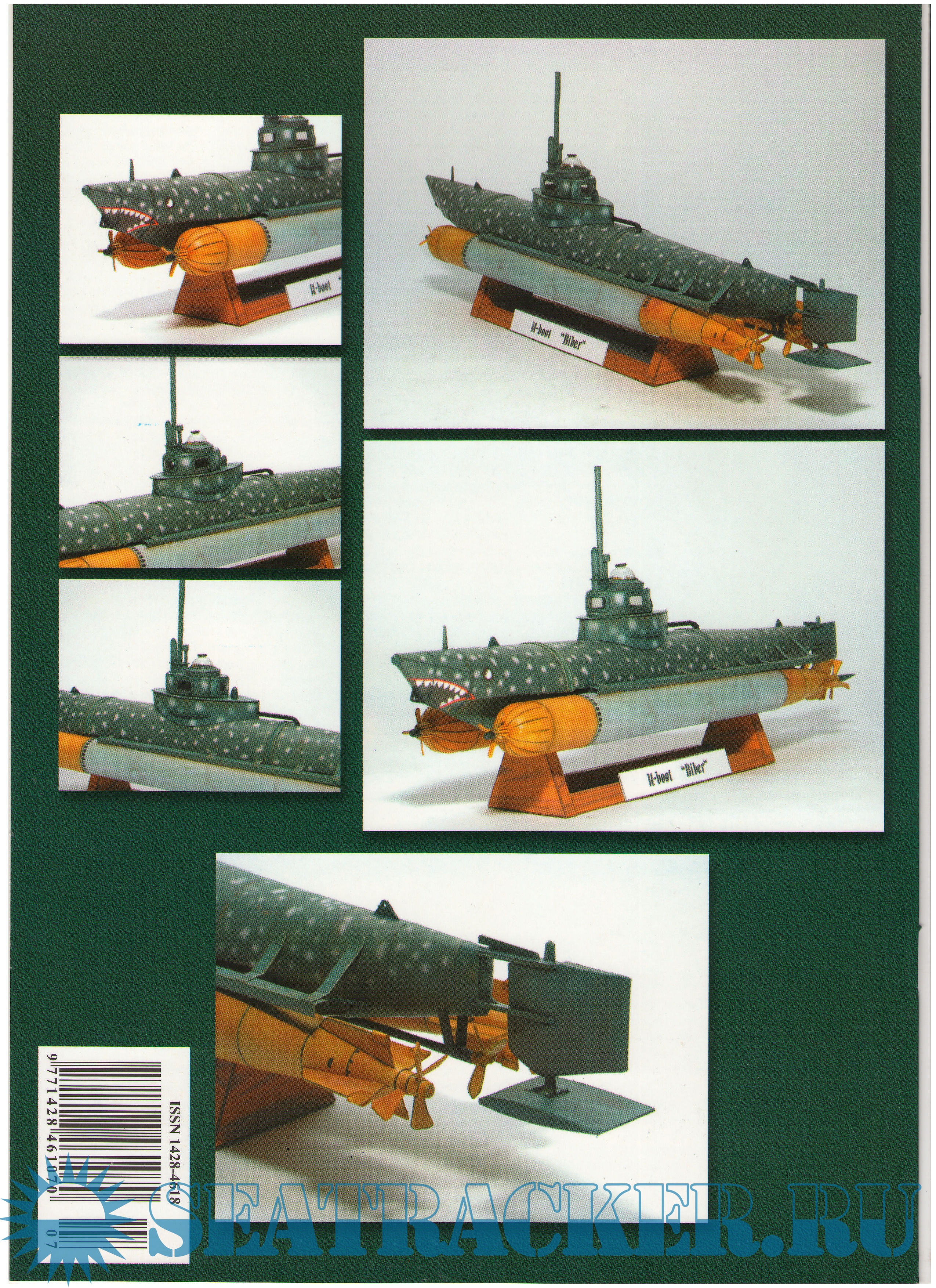 Описание: 12 листов цветных выкроек и инструкций для изготовления бумажной модели германской подводной лодки BIBER в масштабе 1:25