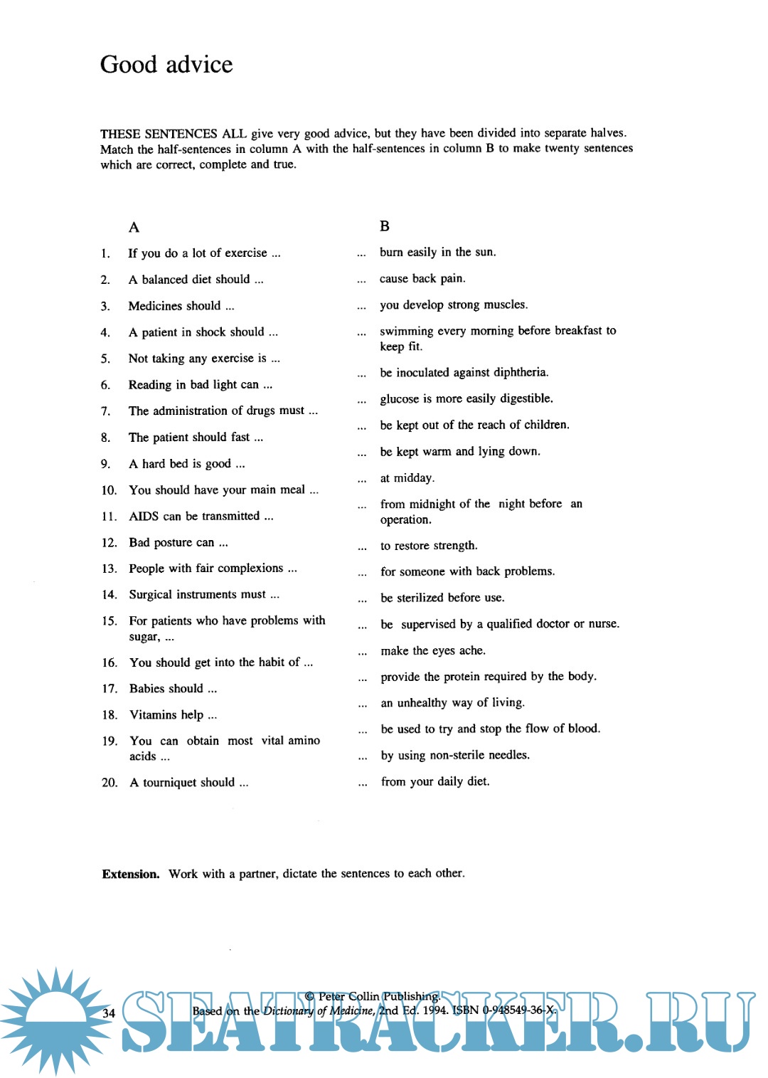 Этот учебник содержит упражнения, помогающие изучить и закрепить медицинскую лексику. Структура книги ясна и проста в применении. В ней скомбинирована возможность самостоятельного изучения и работы в классе.