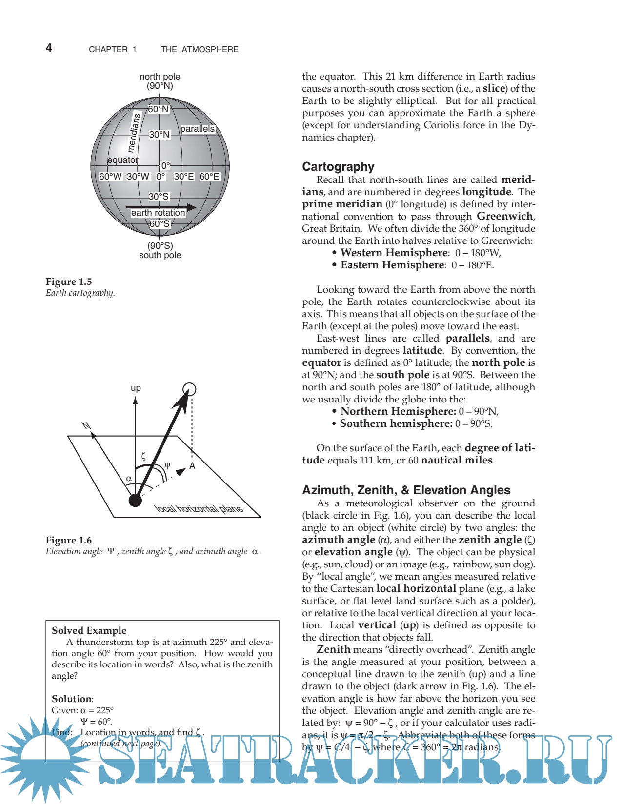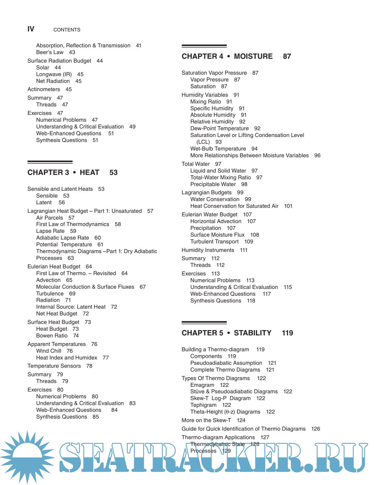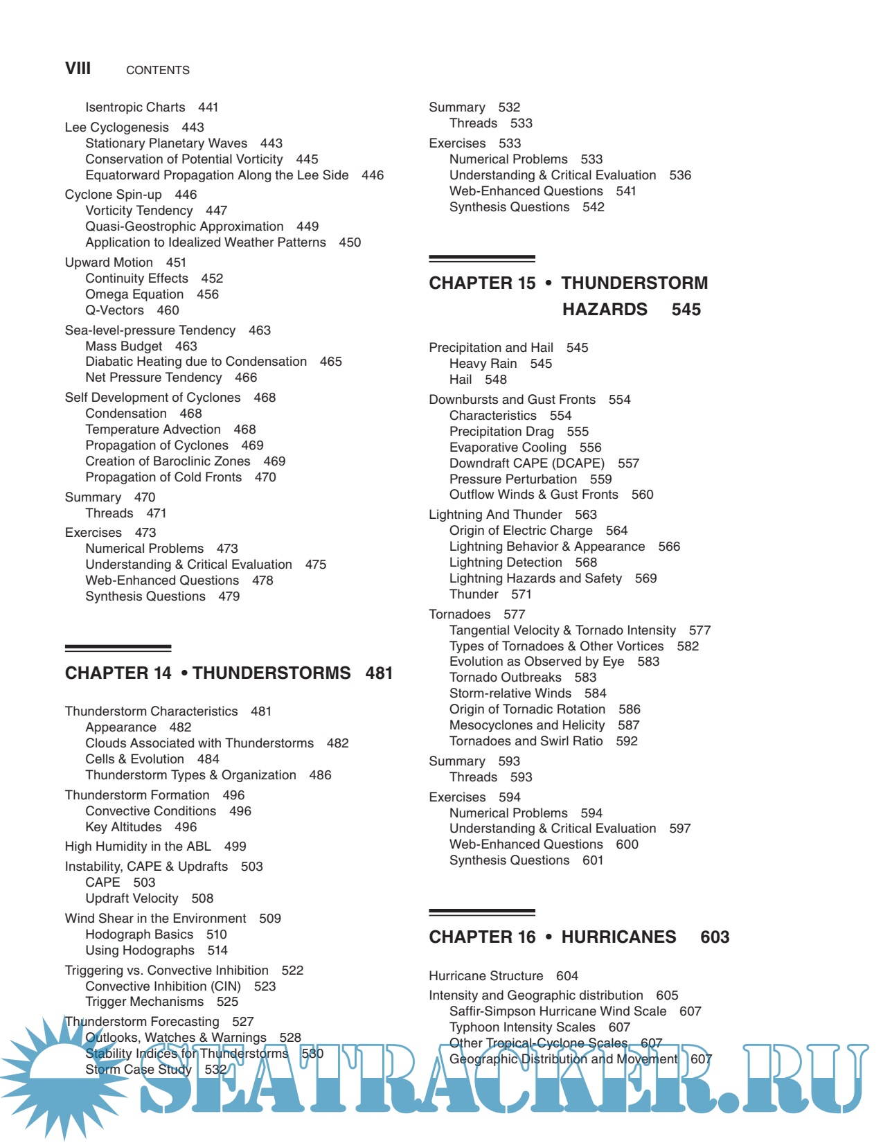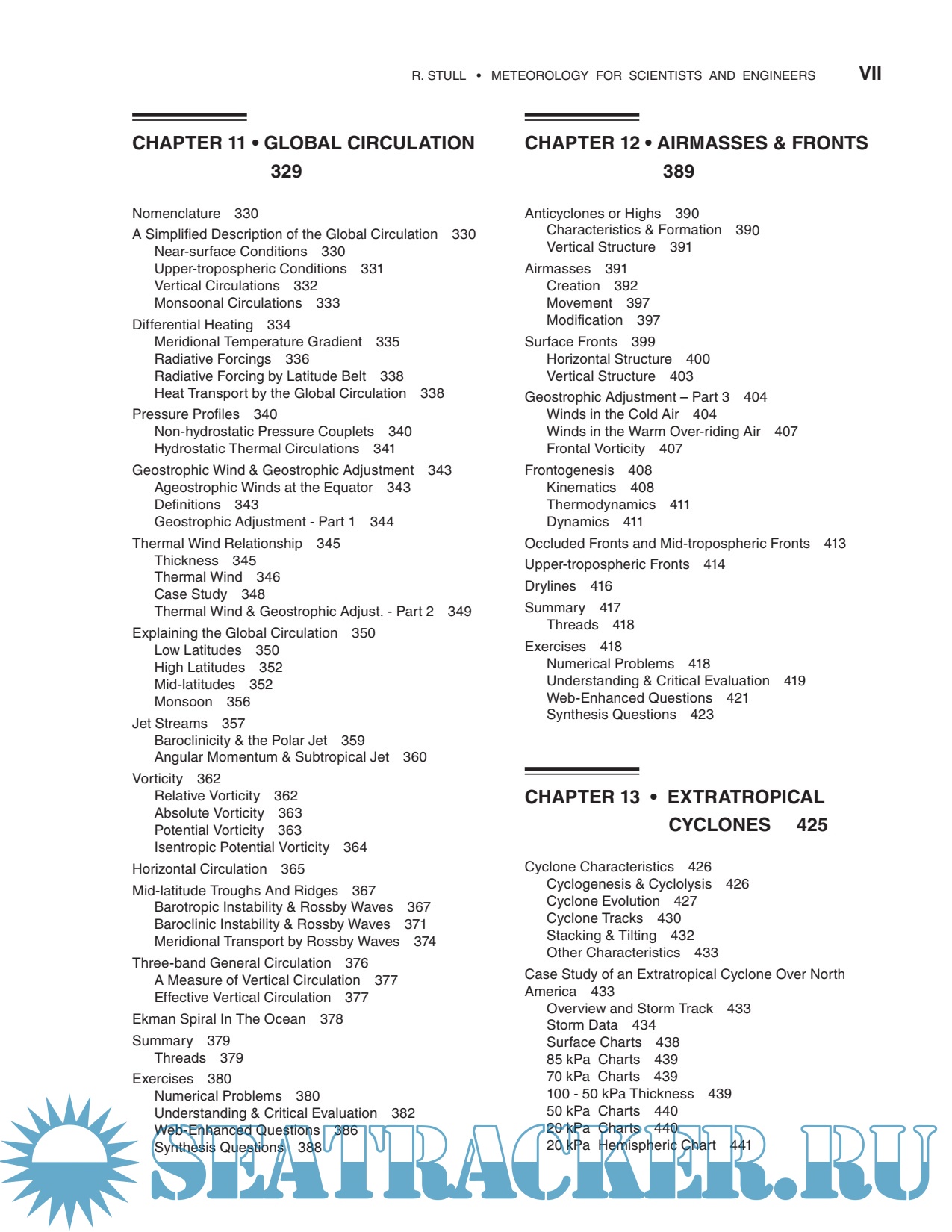 Year: 2015 Language: english Author: Stull R. Genre: Handbook Publisher: Sundog Publishing Edition: 3rd ISBN: 0888651767 Format: PDF Quality: Scanned pages Pages count: 940 Description: This book is designed for students and professionals who want to understand and apply basic meteorological concepts, but who don’t need to derive equations. To make this book accessible to more people, equations have been converted into algebra. With algebraic approximations to the atmosphere, you can see the physical meaning of each term and you can plug in numbers to get usable answers. No previous knowledge of meteorology is needed — the author starts from the basics. Your background should include algebra, trig, and classical physics. This book could serve the fields of Atmospheric Science, Meteorology, Environmental Science, Engineering, Air Quality, Climatology, and Geography. This book is designed to be both a textbook and a reference. As a textbook, the end of each chapter includes extensive homework exercises in categories inspired by Bloom’s taxonomy of learning actions: “Broaden Knowledge & Comprehension”; “Apply”; “Evaluate & Analyze”; and “Synthesize”. Although a hand calculator can be used for some of the homework exercises, other exercises are best solved on a computer spreadsheet such as Excel or using a mathematical program such as MATLAB, R, Mathematica, or Maple. I used Excel for my Sample Applications and most of my graphs.