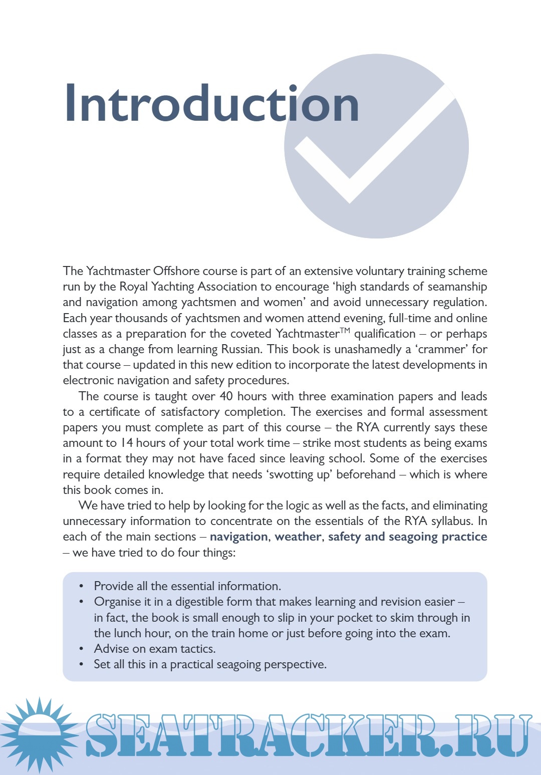 We have tried to help by looking for the logic as well as the facts, and eliminating unnecessary information to concentrate on the essentials of the RYA syllabus. In each of the main sections – navigation, weather, safety and seagoing practice – we have tried to do four things: