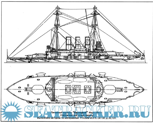 Повреждения линейного корабля “Евстафий” в бою 5/18 ноября 1914 года