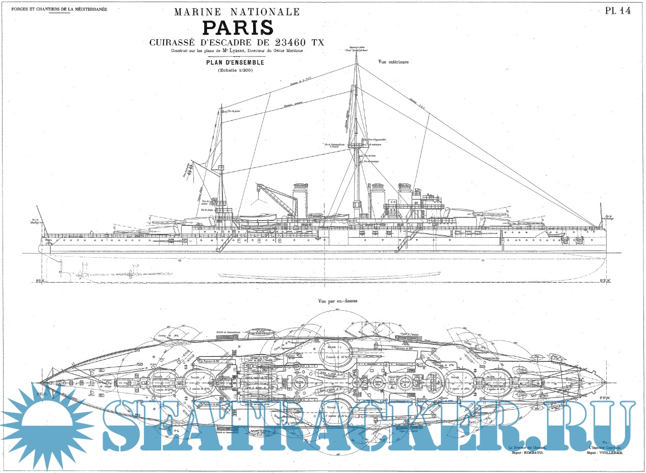 34 листа архивных чертежей французского линкора PARIS 1912 год