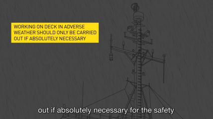 Description: This video aims to raise awareness of safety issues when preparing to work on deck in adverse weather. What can be considered adverse weather depends upon the ship type, freeboard the relative strength and direction of wind and sea. If in doubt, assume that the weather is adverse and act accordingly.