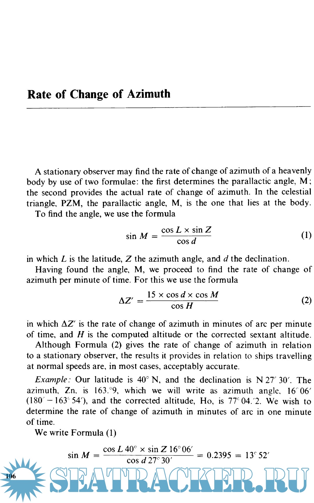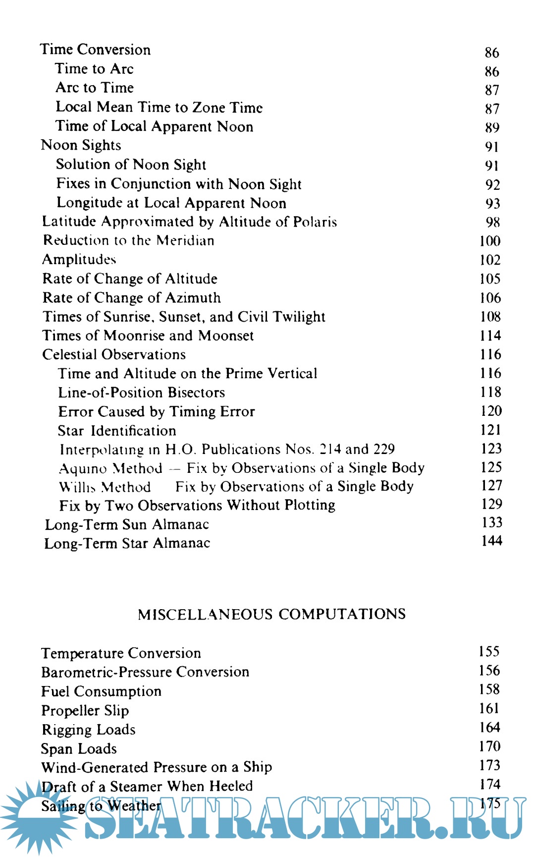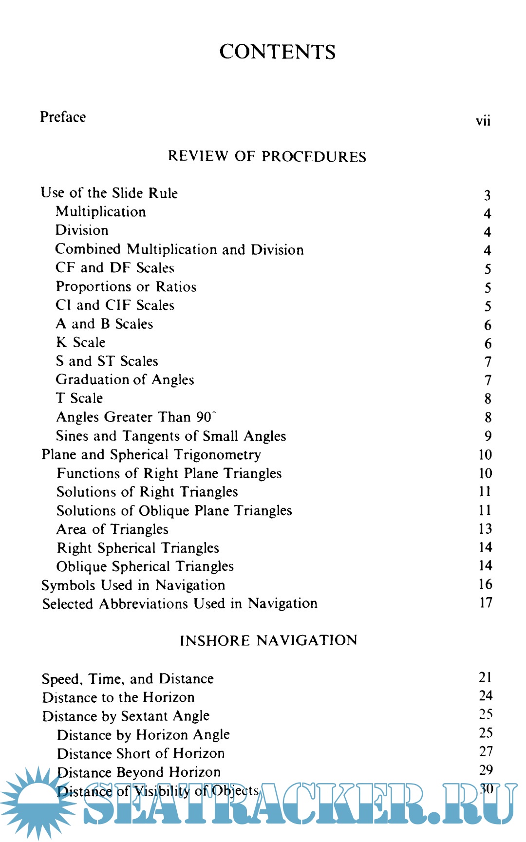 Description: This book contains examples of problems that are most readily solved with the slide rule, and of others that are most readily solved by other means but for which the slide rule can be used when the best means is not available. In addition, it includes two methods of fixing position by observations of a single body. These are given only as a matter of possible interest to the navigator, as instrumentation of sufficient accuracy to permit their successful use afloat is not yet available. The book does not by any means cover all the work that can advantageously be done afloat with the slide rule, and the reader may enjoy discovering a lot more.