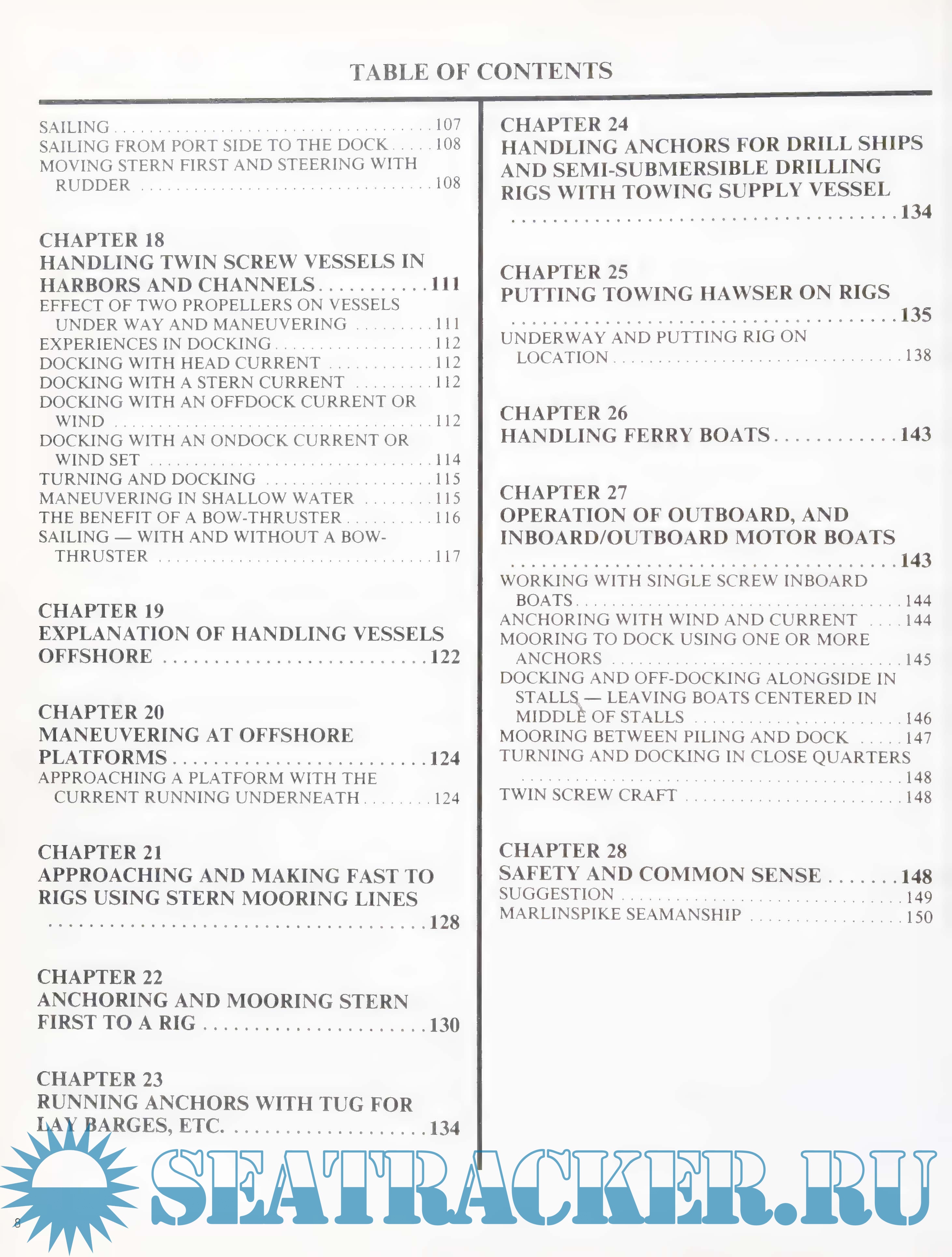Year: 1991 Language: English Author: Robert D. Moss Genre: Practical guide Publisher: Onboard Marine Co Edition: January 28, 1991 ISBN: 9781883121006 Format: PDF Quality: Photos of pages Pages count: 150 Description: An invaluable guide to dock, offdock and handle a vessel using nothing more than the vessel's own power. Move a vessel safely to another port or anchorage by following the fully illustrated and easily understood instructions. An invaluable guide to dock, offdock and handle a vessel using nothing more than the vessel's own power. Move a vessel safely to another port or anchorage by following the fully illustrated and easily understood instructions. However, the mariner who is knowledgeable enough to know that he does not know everything, and pays heed to wind, current, bottom configuration, speed, pressure and suction effect between vessel and dock will have a happy and successful career. It should be noted that all conventional vessels constructed with fixed rudder(s) and propeller(s) operate on the same basic principle as outlined in this book. Size, weight, draft, hull configuration, hull and superstructure above the water, and horse power ratio make the difference in maneuverability. Additional info: Low Resolution version