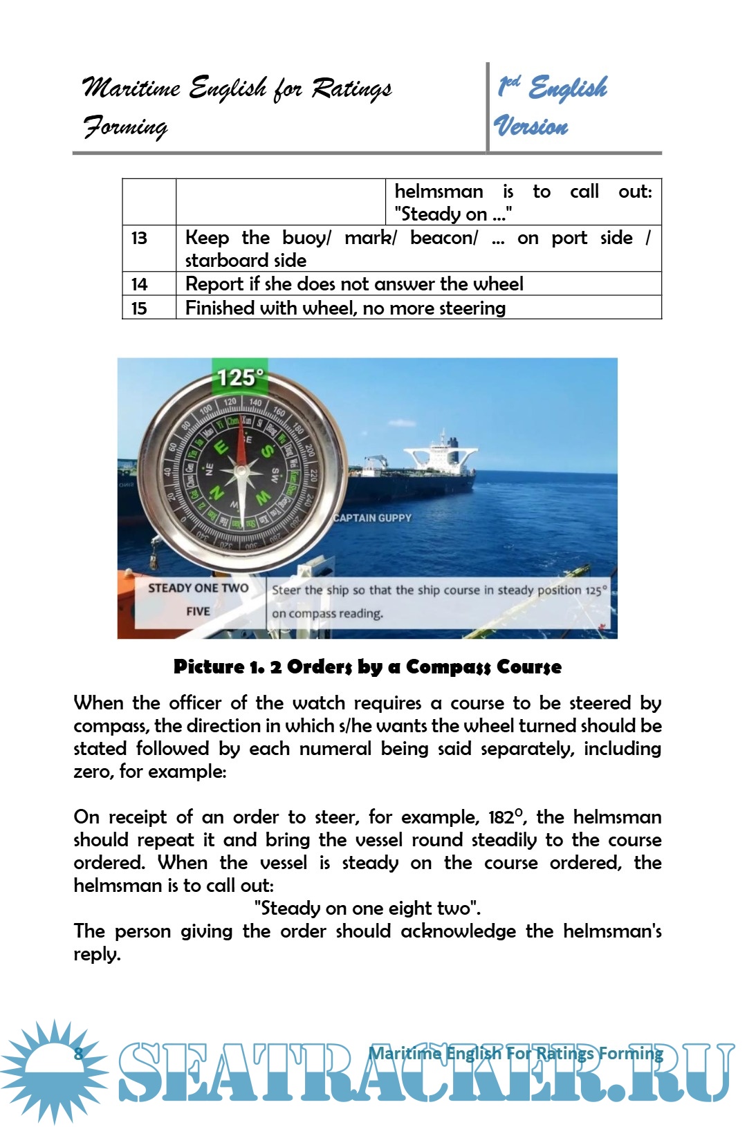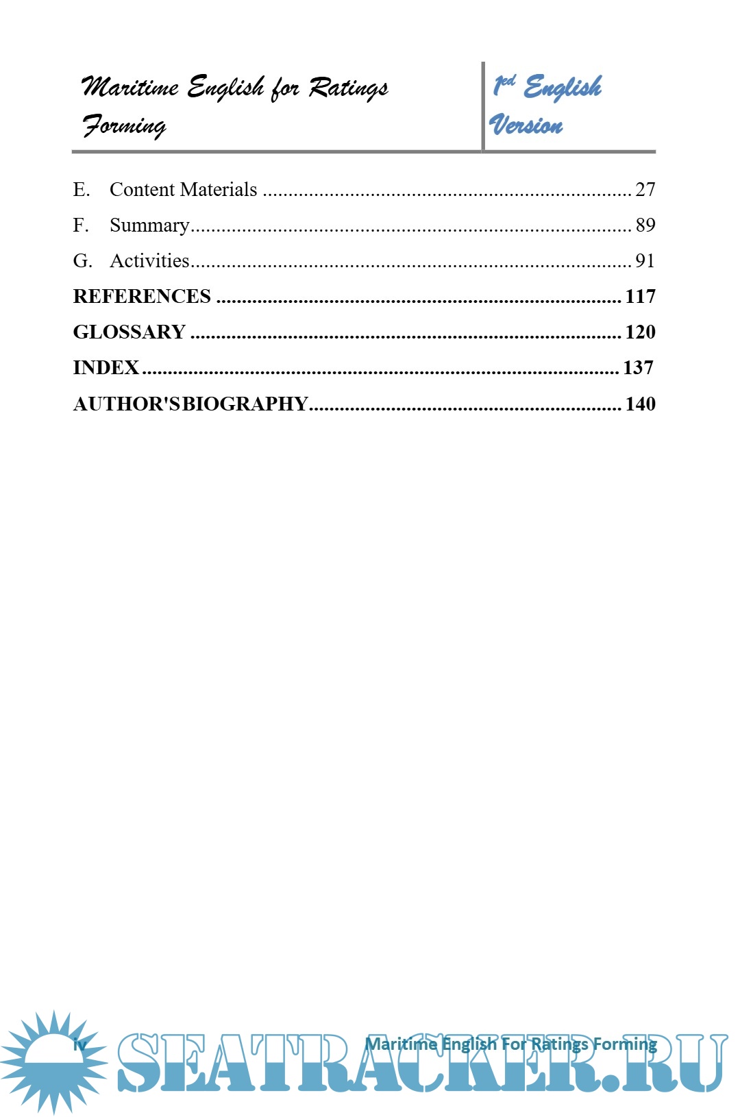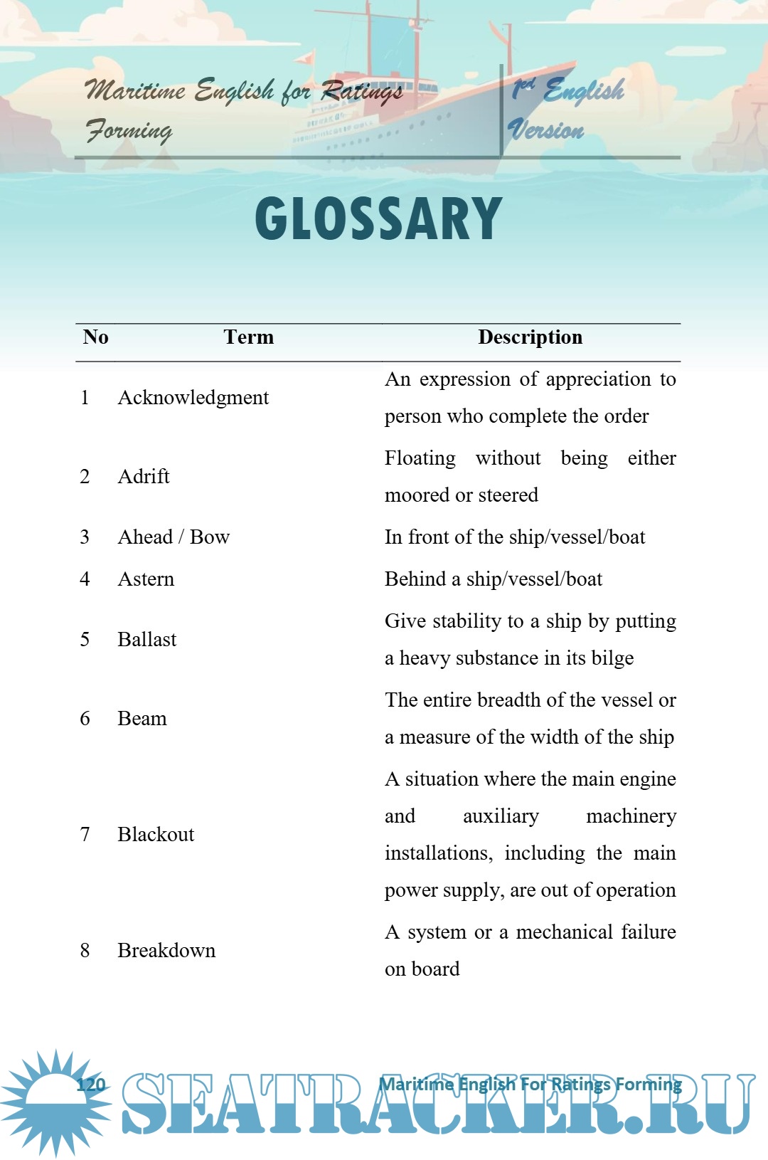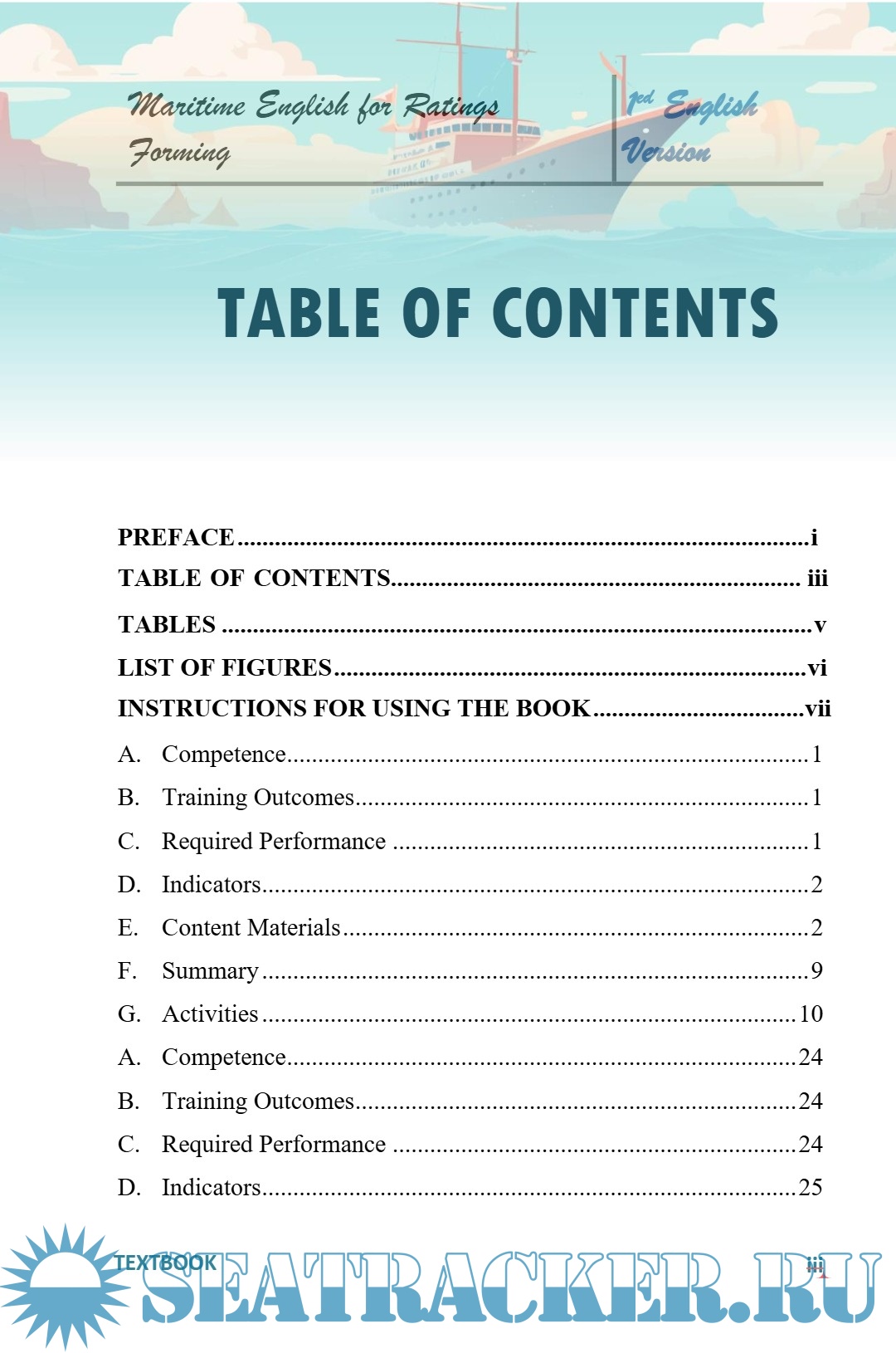 Description: "Maritime English for Ratings Forming" is a comprehensive guide based on the IMO Model Curriculum 3.17, specifically designed for ratings who are shaping their careers in the maritime industry. This guide offers a variety of materials covering situations and vocabulary relevant to life aboard ships, allowing readers to develop their English language skills easily and effectively. With a focus on clarity and communication ease, this book aims to prepare ratings for the challenges of the maritime world by providing a strong understanding of the English language required in their work environment.