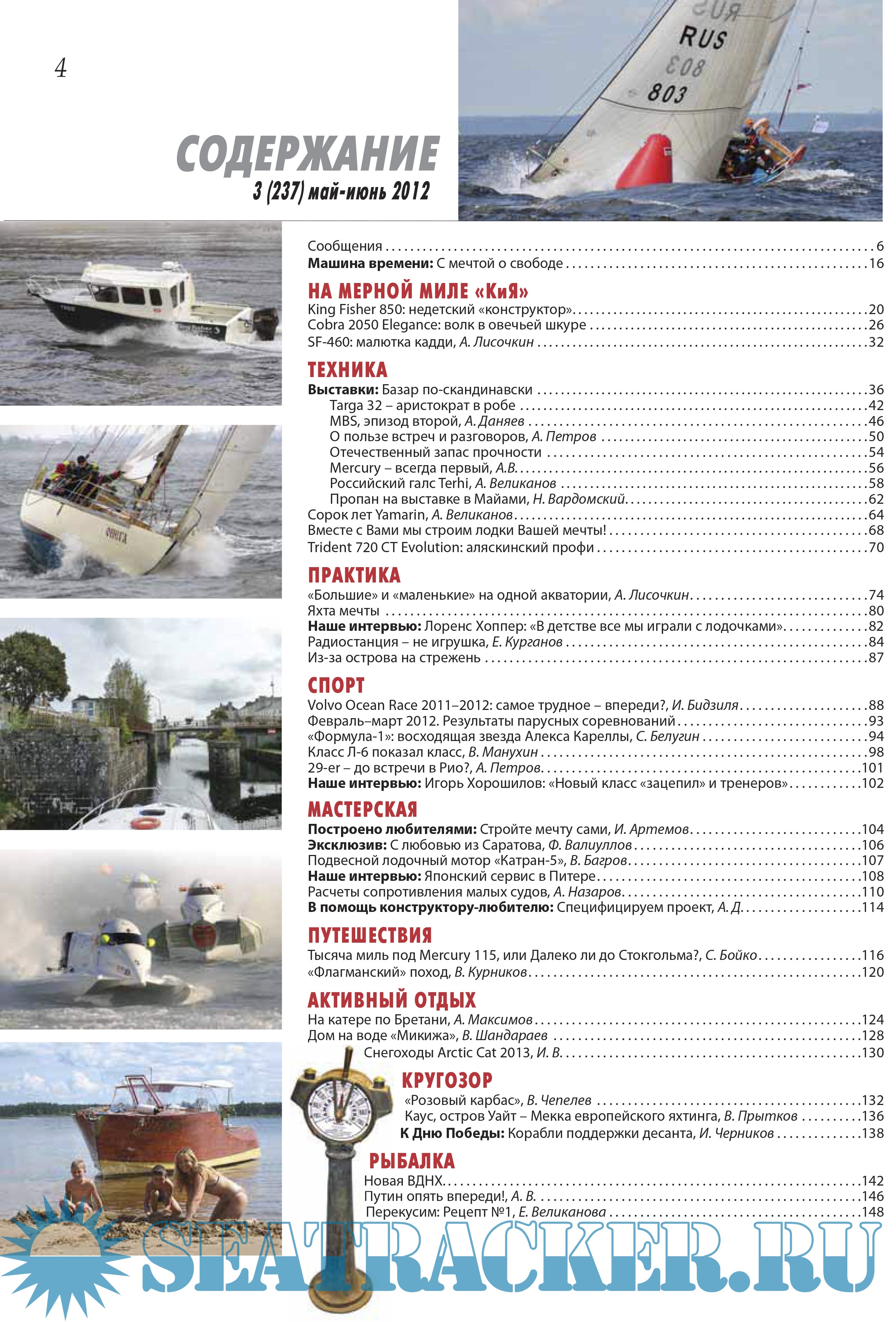 Основная тематика журнала - отдых и спорт на воде, создание и эксплуатация техники для парусного, водно-моторного, воднолыжного спорта, водных видов туризма. Наша основная задача - сделать все возможное для того, чтобы водные виды спорта и отдыха стали наиболее популярными в России.