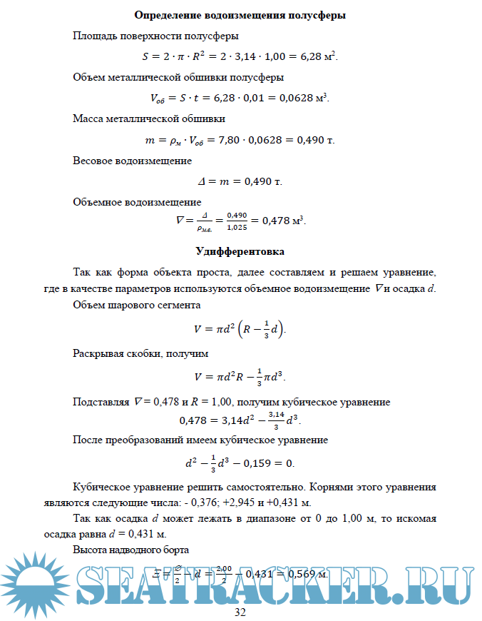 Определение параметров плавучести и начальной остойчивости плавающих тел простой геометрической формы