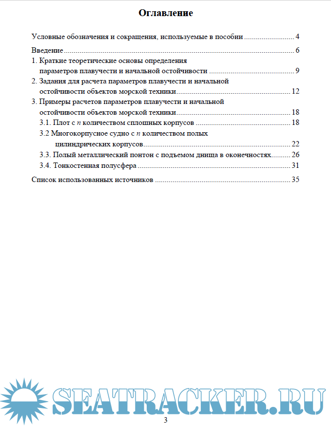 Приведены задания и примеры расчета параметров плавучести и начальной устойчивости.