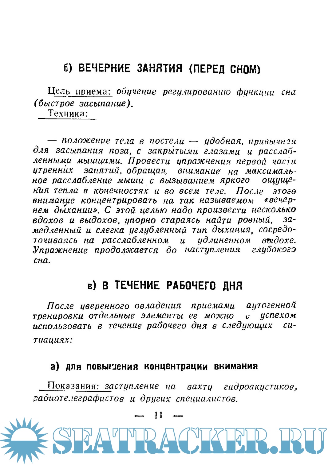 Описание: Овладение собственными эмоциями, тренировка воли, памяти, концентрация внимания, создание гибкой, подвижной и устойчивой высшей нервной деятельности, привычка к самонаблюдению и самоотдаче — это те качества, в которых нуждается специалист, занятый в особенно сложных и напряженных по нервно-психическим условиям профессиях, в том числе подводник. Вот поЧеми метод сознательной регуляции психической и физической нагрузки должен войти в повседневную жизнь так же, как физическая культура.