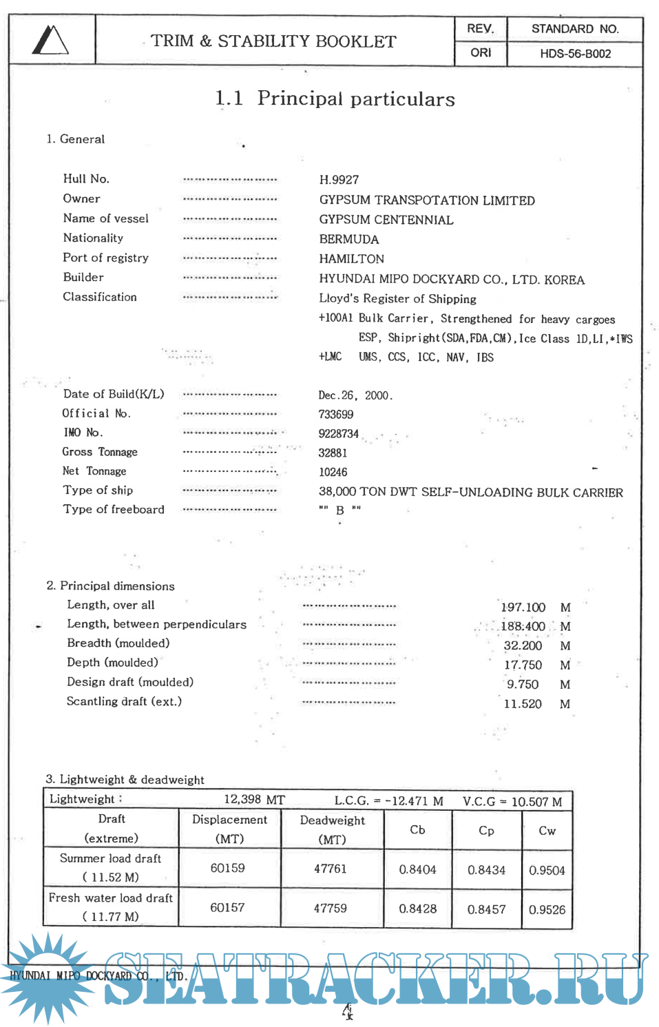 Year: 2011 Language: English Author: Hyundai Mipo Dockyard Genre: Documentation Format: PDF Quality: Scanned pages Pages count: 301 Description: Stability book for the Gypsum Centennial 1 of 2
