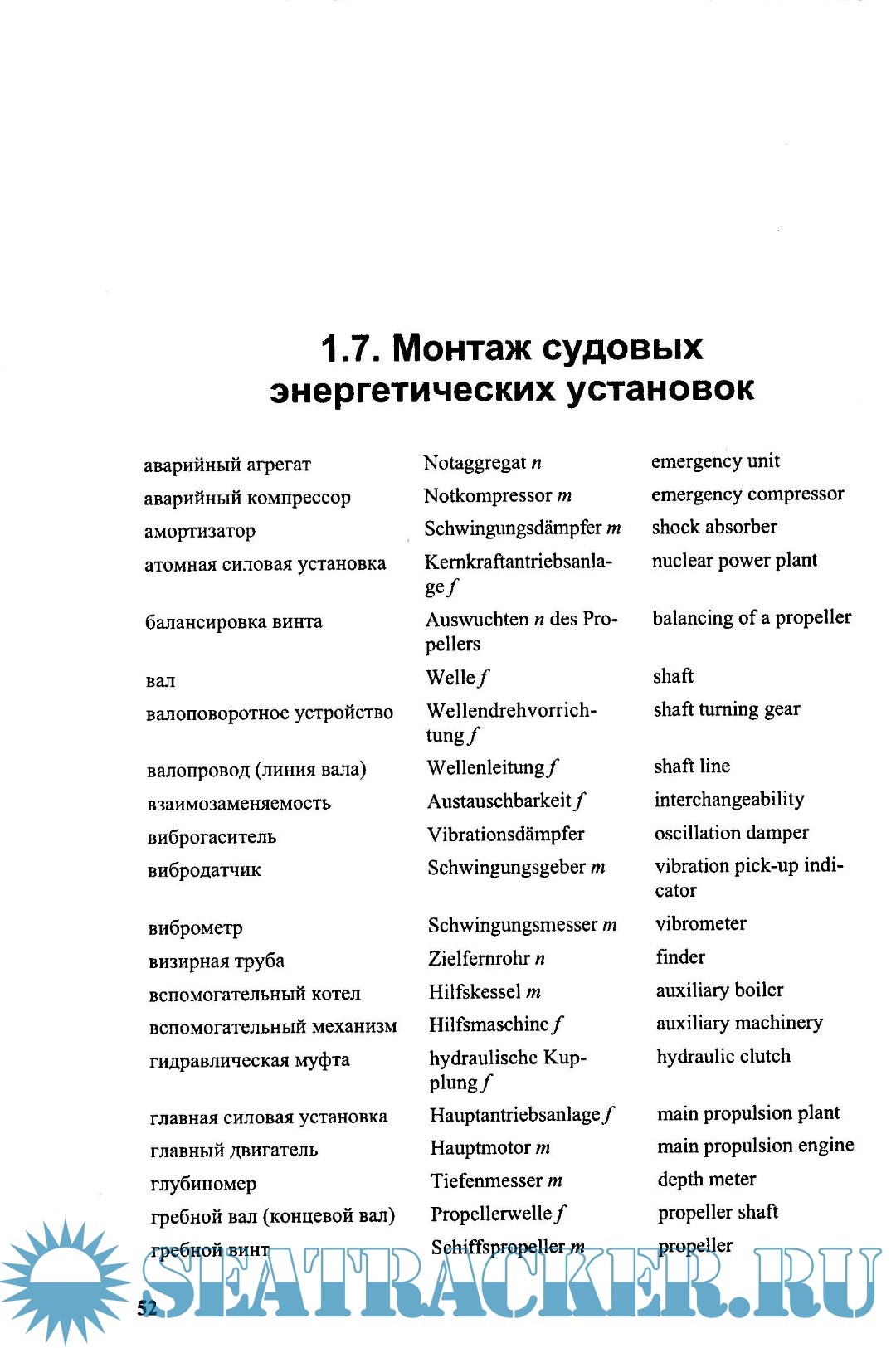 Description: The dictionary, which unites about 1600 terms used in shipyard practice, includes two main sections. The first of them is built according to the "Russian-English-German" placement scheme. Within it, the presented terms are grouped into nine special topics. The second section contains three combined dictionary blocks, within which the same terms are built according to the schemes: Russian-English-German, English-German-Russian and German-Russian-English dictionaries.