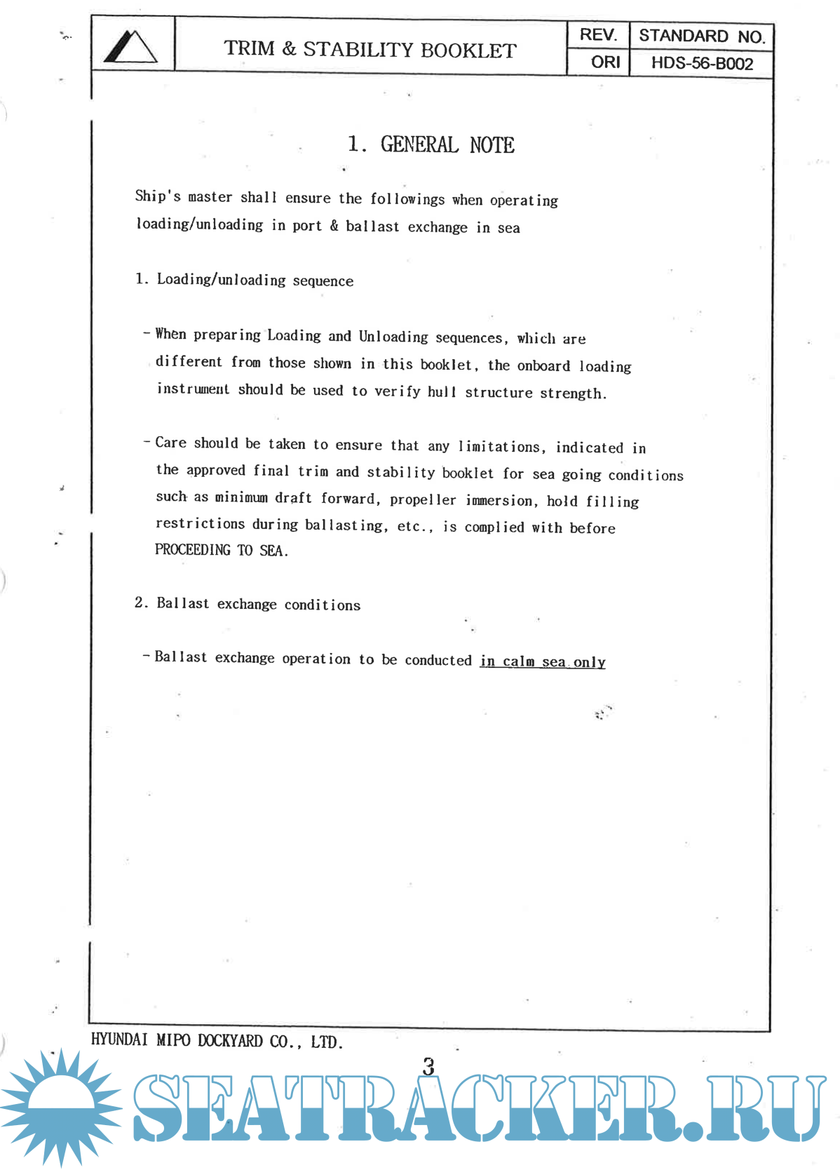 MV HANJIN TURKEY- 3600 TEU class container carrier- Provisional Trim and Stability booklet -…