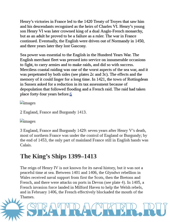 Year: 2016 Language: English Author: Ian Friel Genre: Historical Publisher: Spellmount Format: PDF Quality: eBook Pages count: 242 Description: Without Henry V’s Navy, the Battle of Agincourt would never have happened. Henry’s fleet played a major – if often unrecognised – part in enabling the king to come within reach of final victory in the Hundred Years War against France. Henry’s navy was multinational, and comprised his own royal fleet, English merchantmen and many foreign vessels from the Netherlands, the Baltic and Venice.