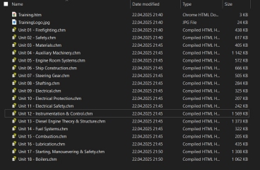 Description: Engineering Knowledge is a comprehensive and well-structured reference designed to support the education and training of marine engineers. This CHM file serves as both a study guide and a technical manual, covering the fundamental aspects of ship machinery, systems, safety procedures, and operational theory essential for the engine department onboard.