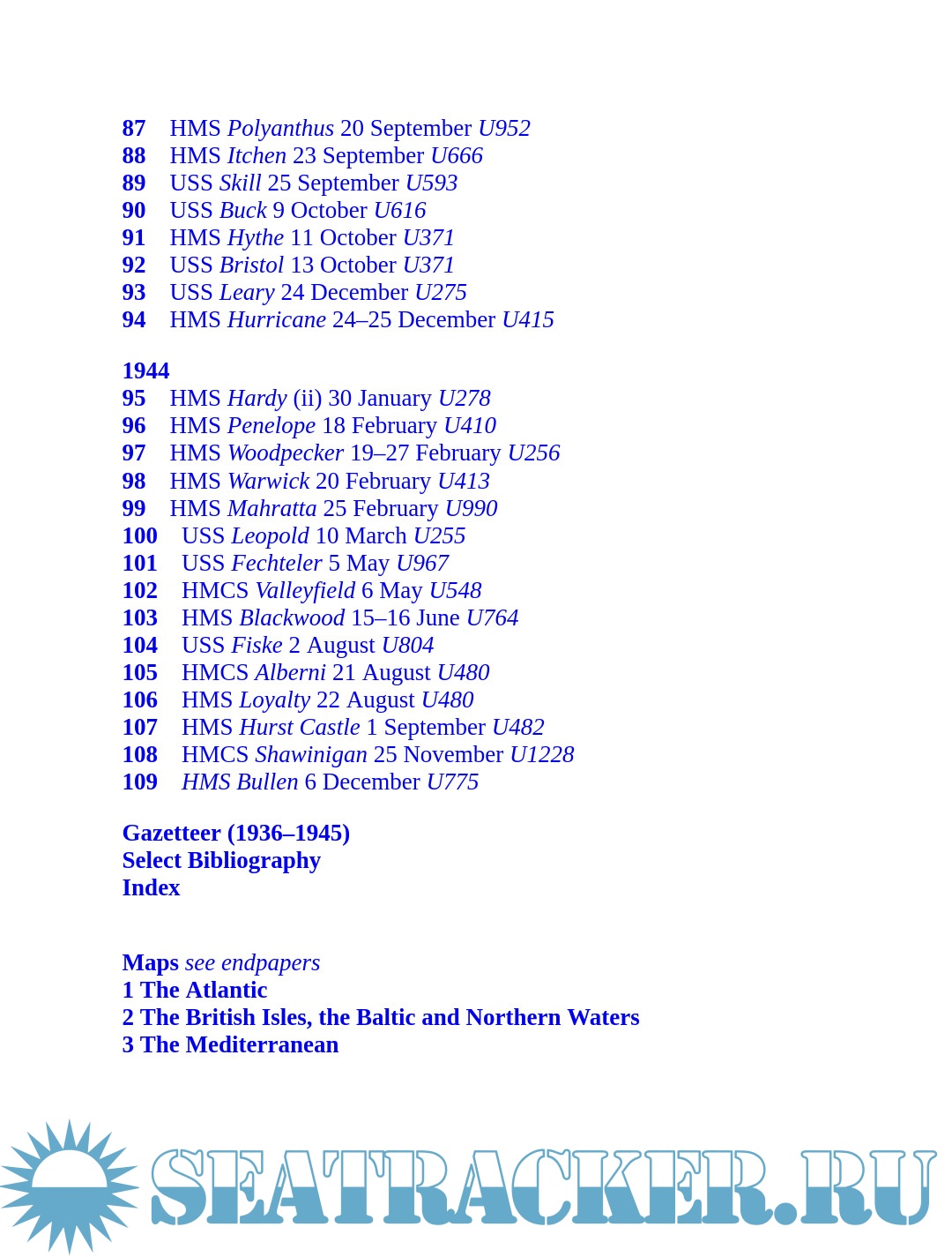 Description: During WWII over 250 Allied warships from a dozen navies were sunk by German U-boats. This groundbreaking study of 110 vessels provides a detailed analysis of every sinking for which source material survives from both the Allied and German sides. Representing the first large-scale publication of U-boat war diaries in any language, the book offers a wealth of new information, including the circumstances of the sinkings, the technical environment, and the fate of the crews.