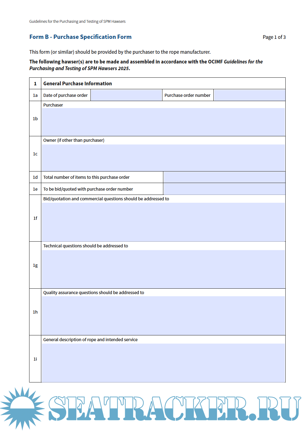 Description: Supporting Documents - Fillable Forms, Checklists and Reports (ONLY) for Guidelines for the Purchasing and Testing of SPM Hawsers.