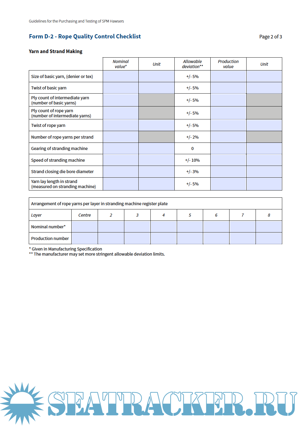 • Form A OCIMF Guidelines for the Purchasing and Testing of SPM Hawsers Compliance Certificate