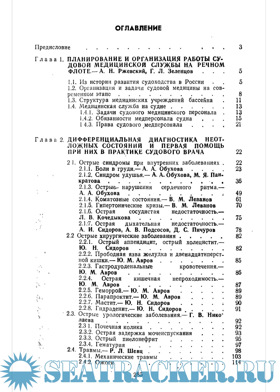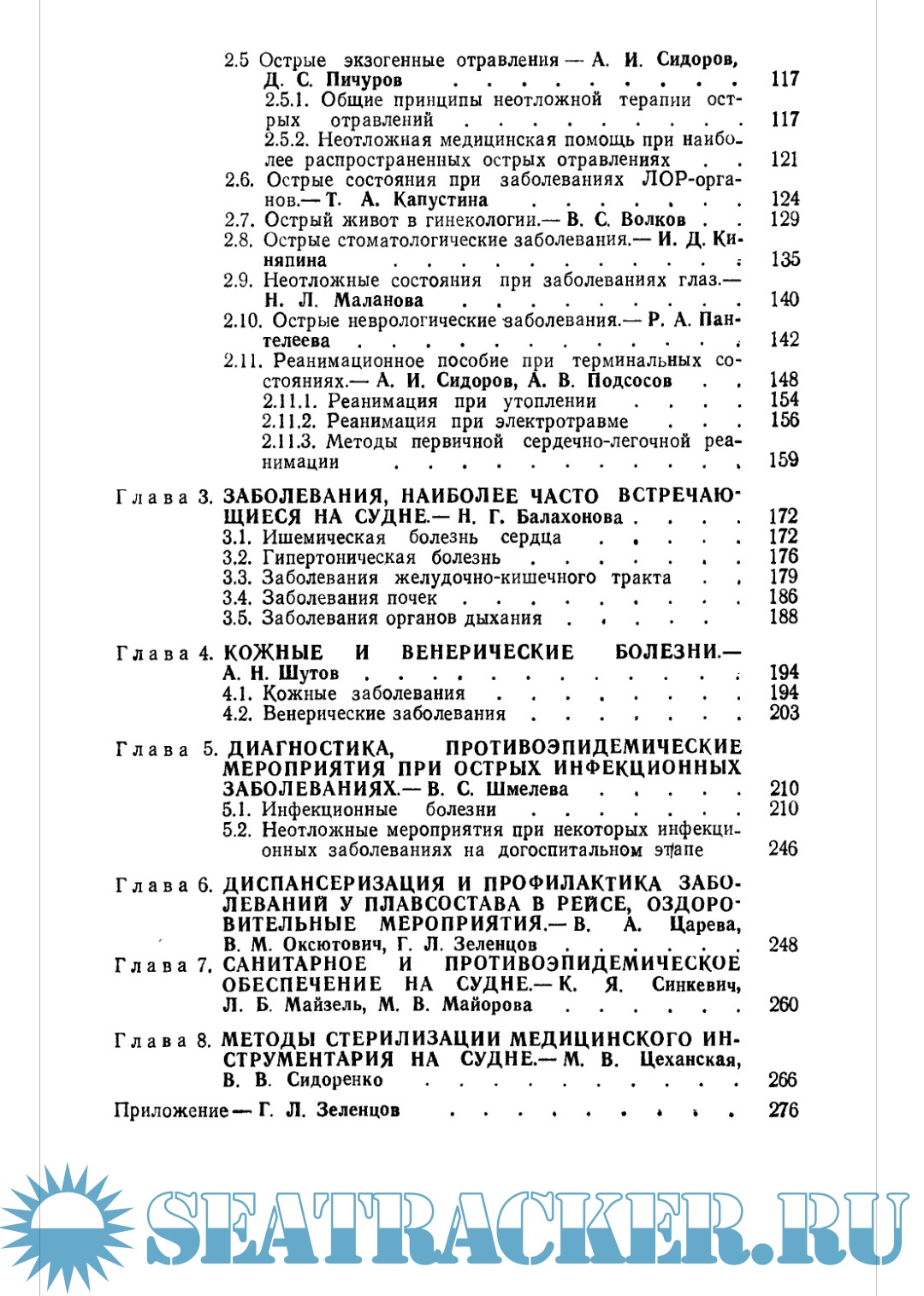 Описание: Настоящее «руководство» составлено ведущими специалистами Горьковского медицинского института им. С. М. Кирова и опытными врачами Центральной бассейновой больницы в г. Горьком. Книга состоит из нескольких глав, которые посвящены основным аспектам работы врача на речном судне. Включены разделы об организации работы и функциональных обязанностях судового медицинского персонала; о дифференциальной диагностике и лечении неотложных состояний, клинике и тактике при наиболее часто встречающихся на судне заболеваниях. В отдельном разделе представлены материалы по диспансеризации и профилактике заболеваний у плавсостава во время навигации. Предназначено для врачей и фельдшеров, работающих на судах речного флота.