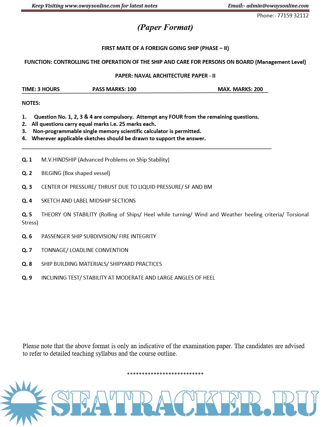 Question Paper Set for Phase I (Chief Mate F.G.) Mercantile Marine Department (MMD), India…
