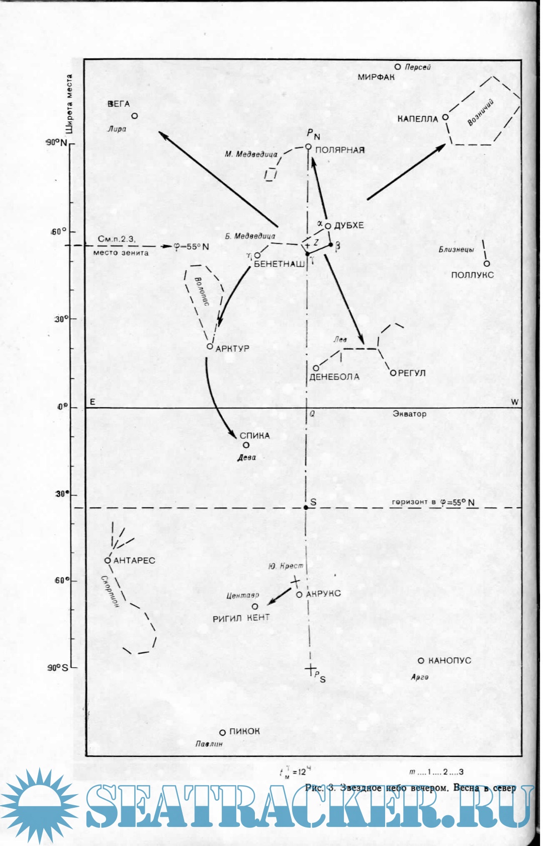 Ориентирование по широте места наблюдений