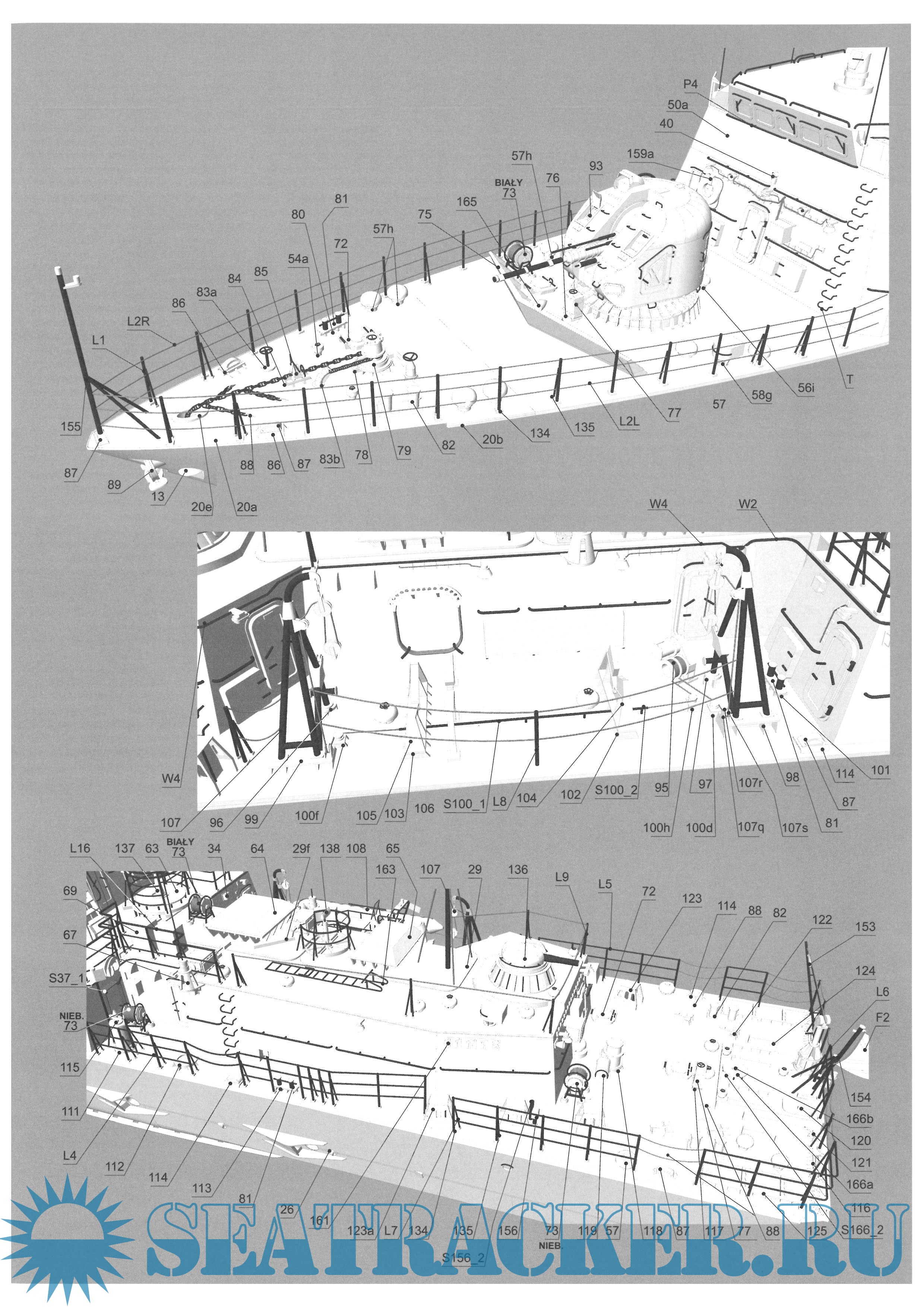 28 листов цветных выкроек и инструкций для изготовления бумажной модели сторожевого корабля "АЛМАЗ" проекта 10410 в масштабе 1:200