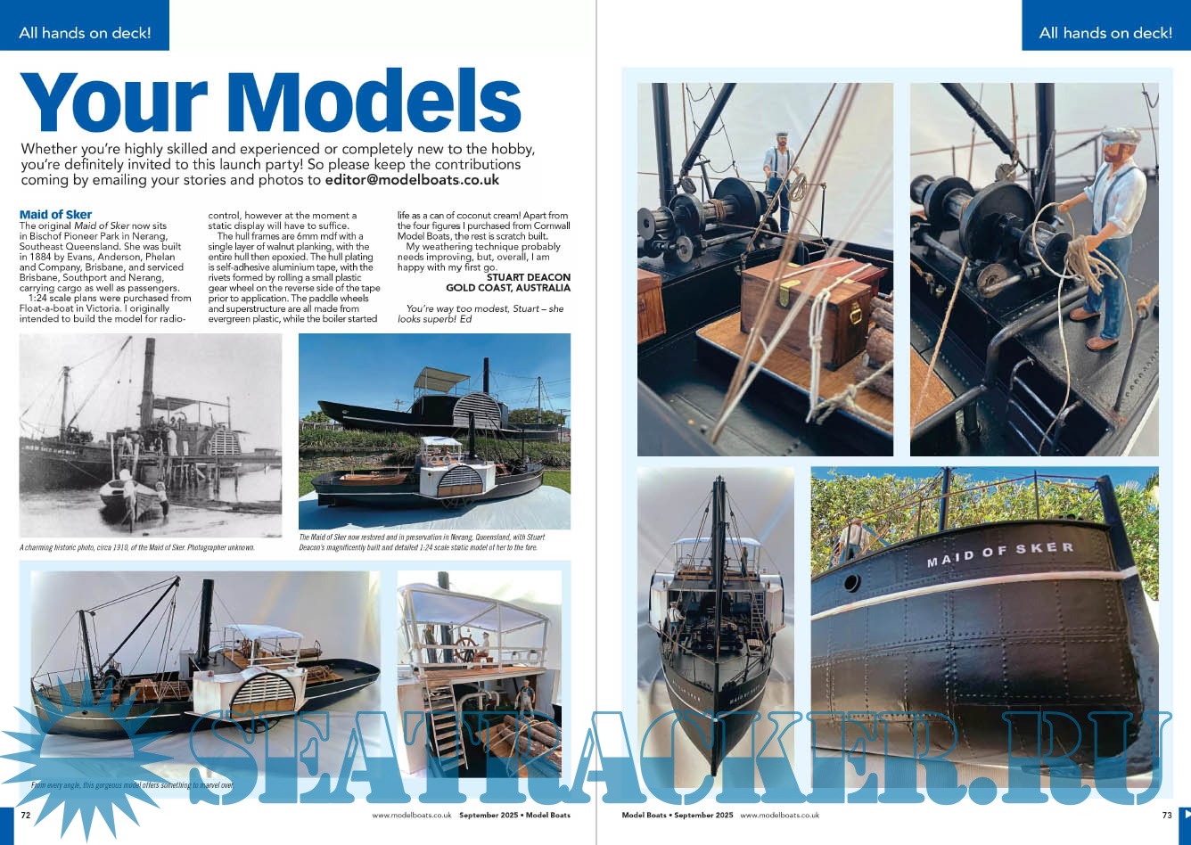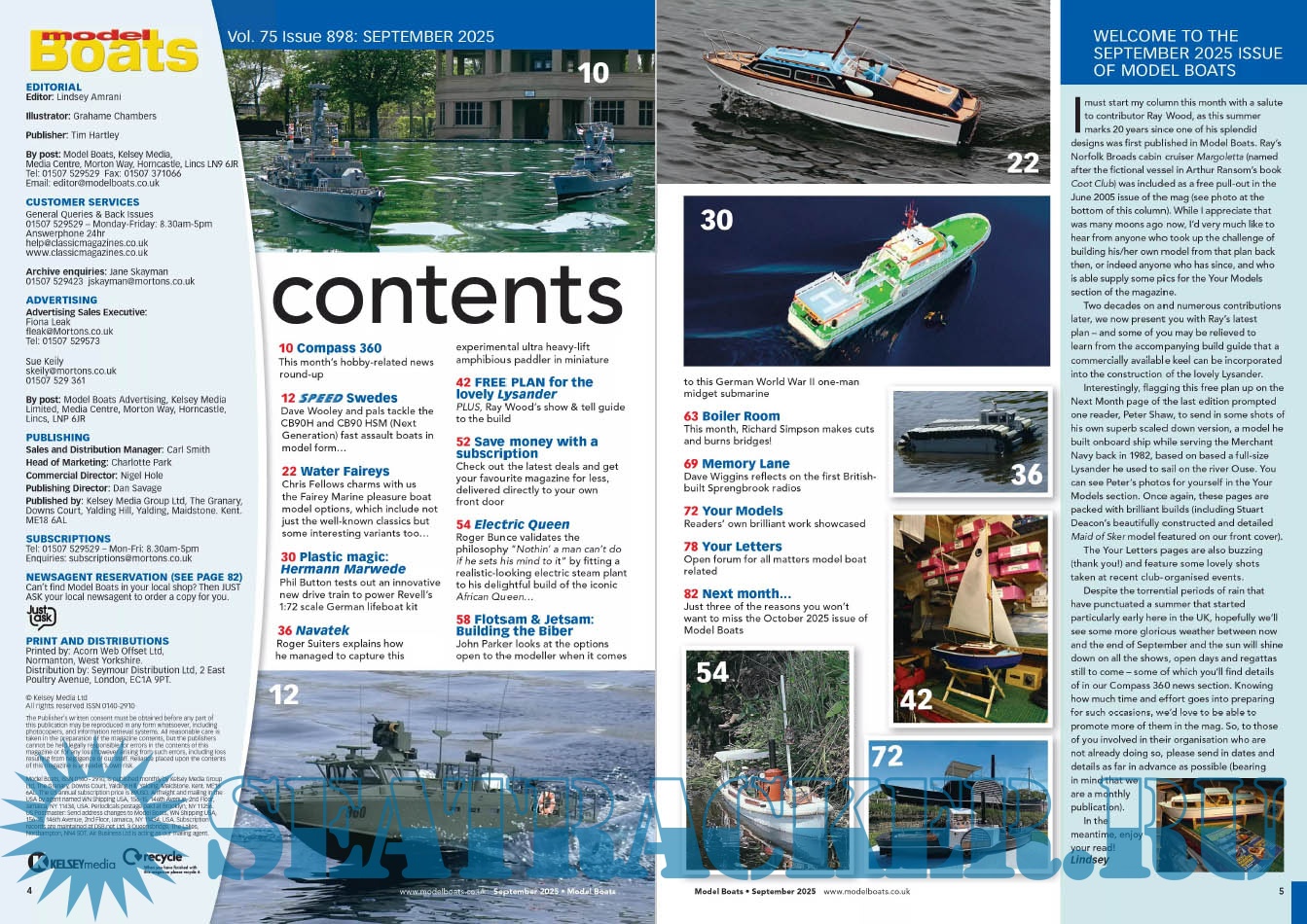 Year: 2025 Language: English Author: Lindsey Amrani (Editor) Genre: Periodical publication Edition: 2025-09 Format: PDF Quality: eBook Pages count: 100 Description: Model Boats magazine is a practical and informative read for those with a love for the hobby. It covers the latest news and views from the various clubs and associations around the country, useful hints, tips and step by step guides for those interested in the art of constructing a model boat as well as tests and recommendations of new boats and tools. Floating along behind these are great special features examining in depth different models from narrowboat to destroyer!
