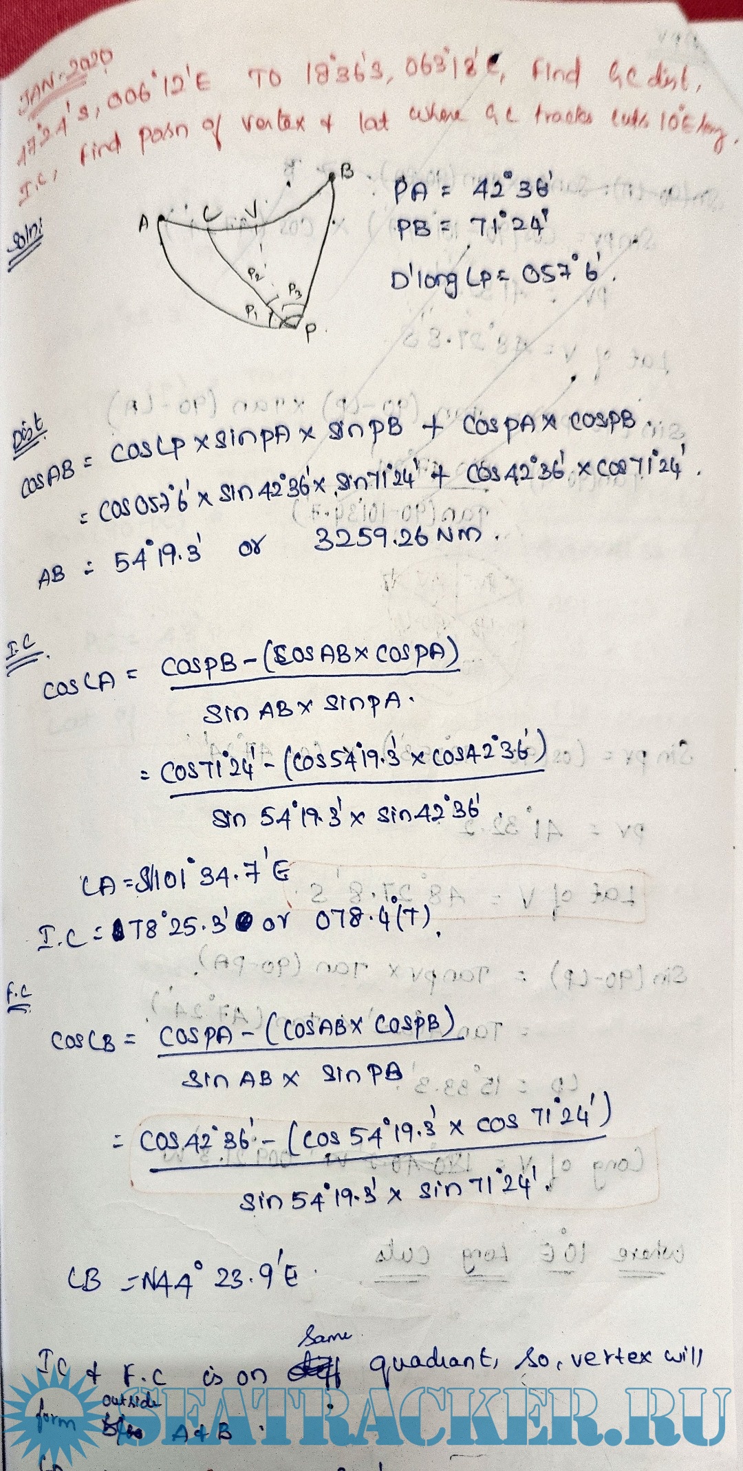 Navigation - Solved Numericals Great Circle and Composite Great Circle (2020-2012) from Past…