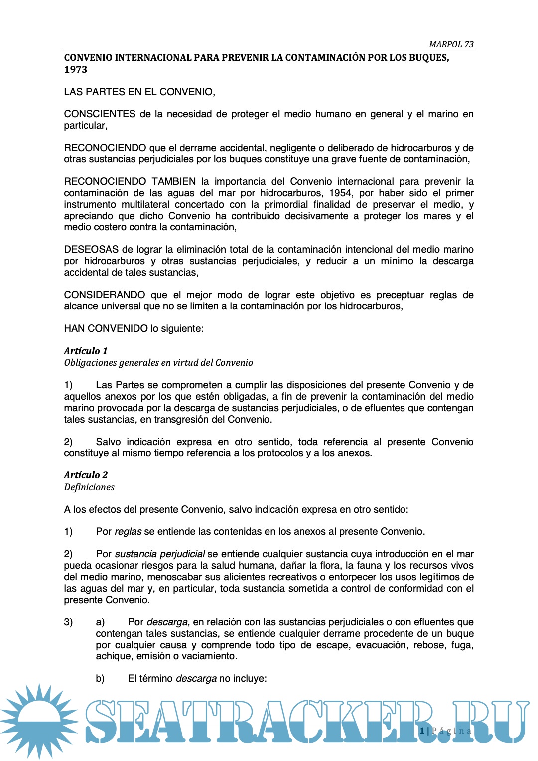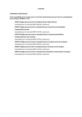 Este texto ha sido consolidado por la Subdirección General de Seguridad, Contaminación e Inspección Marítima de la Dirección General de Marina Mercante. Recogiendo todas las enmiendas al Convenio hasta el MEPC 76, mediante documentos oficiales OMI y publicaciones BOE, llevado a cabo todos los esfuerzos para evitar errores y reproducir los textos originales fielmente. Aun así, los lectores deberán ser conscientes que los textos de la OMI y del BOE prevalecerán en caso de discrepancias