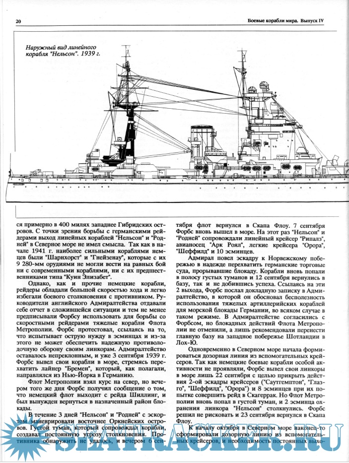 Описание: Линейные корабли “Родней” и “Нельсон” являлись венцом развития английских тяжелых артиллерийских кораблей. Несмотря на все нововведения, их конструкция так или иначе повторяла конструкцию таких удачных кораблей, как Куин Элизабет, но самое главное – была сохранена идеология развития английских боевых кораблей, преломленная через опыт первой мировой войны с учетом перспективы на войну предстоящую.