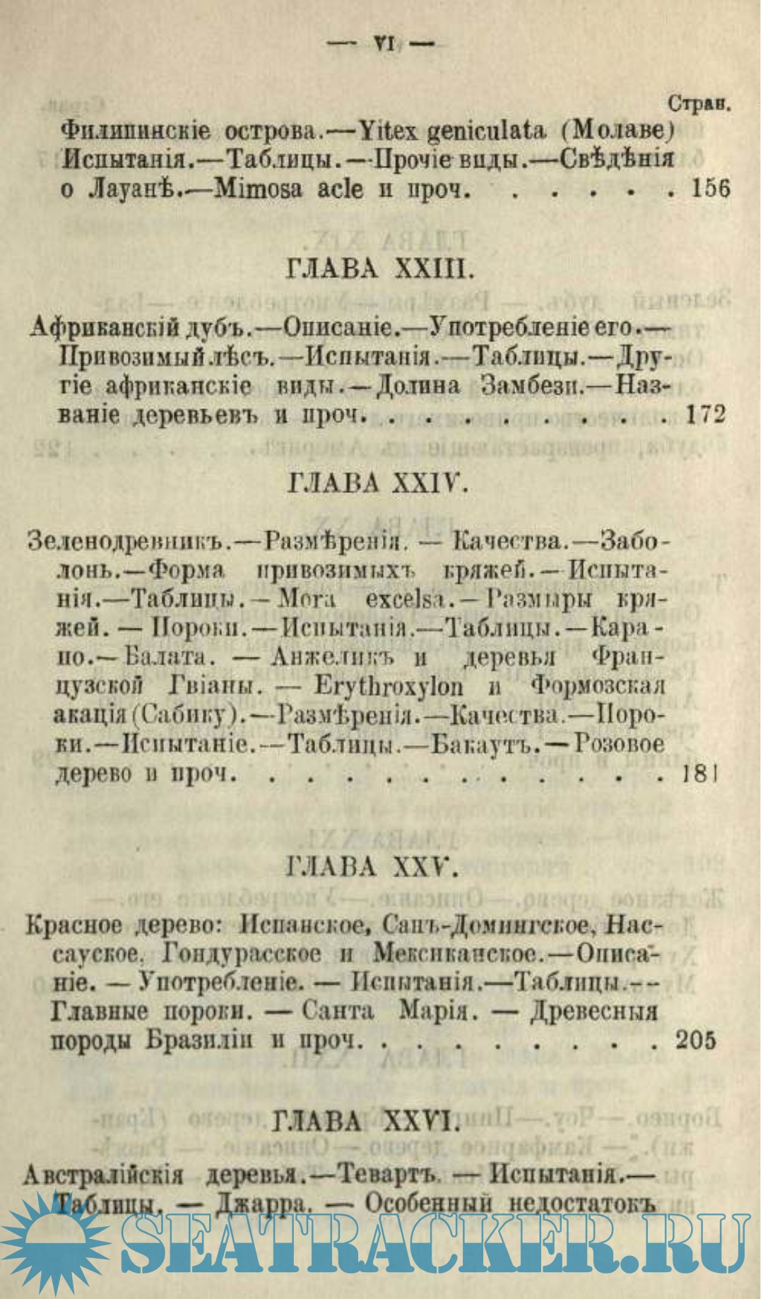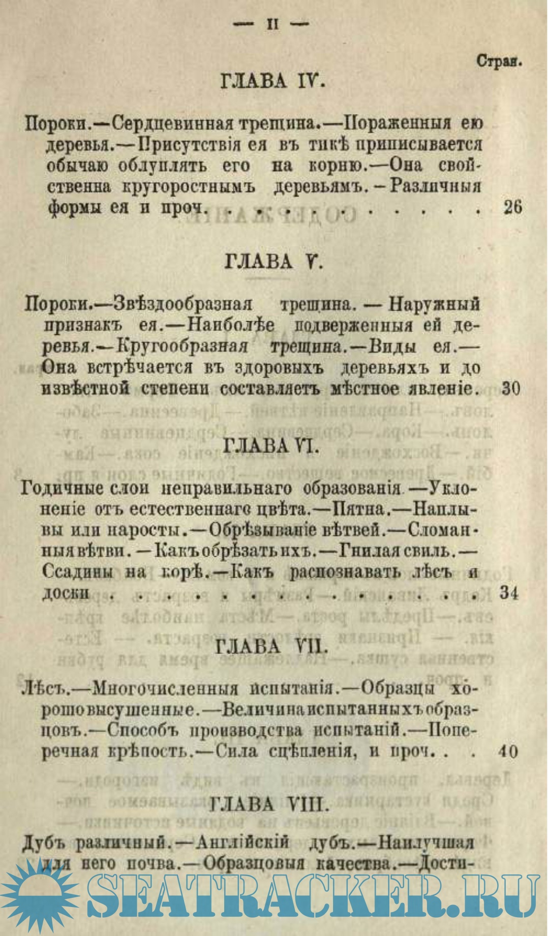 Год выпуска: 1878 Язык: Русский Автор: Ляслетт Т. Жанр: Руководство Издательство: СПб.: тип. Мор. м-ва Формат: PDF Качество: Отсканированные страницы Количество страниц: 456 Описание: Свойства и отличителыныя качества лѣса, употребляемаго для построекъ, такъ многочисленны и важны и вмѣстѣ съ тѣмъ такъ малоизвѣстны, что я, по просьбѣ многихъ друзсй моихъ, рѣшился изложить на этихъ страніцахъ всѣ тѣ свѣдѣнія по этому предмету, какія я могъ пріобрѣсти. Англійсній дубъ.—Время для рубки.-Таниинъ въ корѣ.—Деревья зимней рубки. —Свѣдѣнія о нѣкотрыхъ судахъ, построенныхъ изъ такого дуба u проч. Англійскій дуб.—Контракты по поставкѣ его на флотъ.—Спесификація брусьевъ и досокъ. Сроевой лѣсъ.—Зимняя рубка.—Естественная высушка.—Указанія какъ слѣдуетъ складывать лѣса. — Сушка. — Способъ Дюгамеля. — Способъ Финчана. — Распариваніе. — Нагрѣтыя камеры. — Обугливаніе.— Привилегированный способъ Lapparent. — Испытаніе еію въ Вуличѣ. — Опыты. — Таблицы. — Выводы изъ предыдущихъ опытовъ Редкая книга по оценке качества различных сортов дерева в применении к деревянному судостроению.
