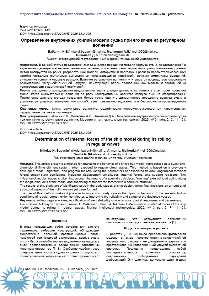 Морские интеллектуальные технологии 2025 № 3 часть 2