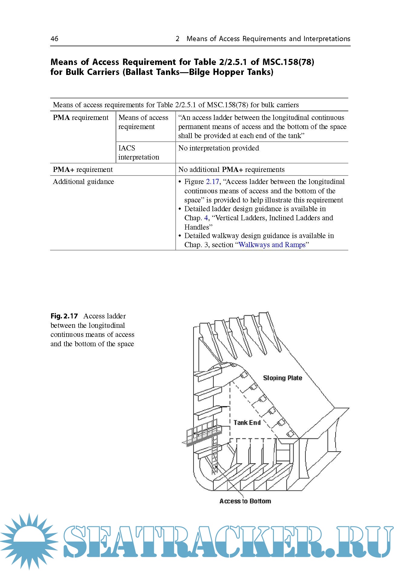 The goal is to improve the comprehension and application of the Statutory and IACS guidance. Conceptually, this text presents two levels of means of access guidance. The first provides the base criteria to meet the IMO requirements. The second, and preferred, level of guidance incorporates the application of current ergonomics practices to the means of access requirements. The application of ergonomics to the means of access requirements will enhance levels of safety as well as quality of work by providing appropriate access for survey, inspection and maintenance activities for tanks and holds.