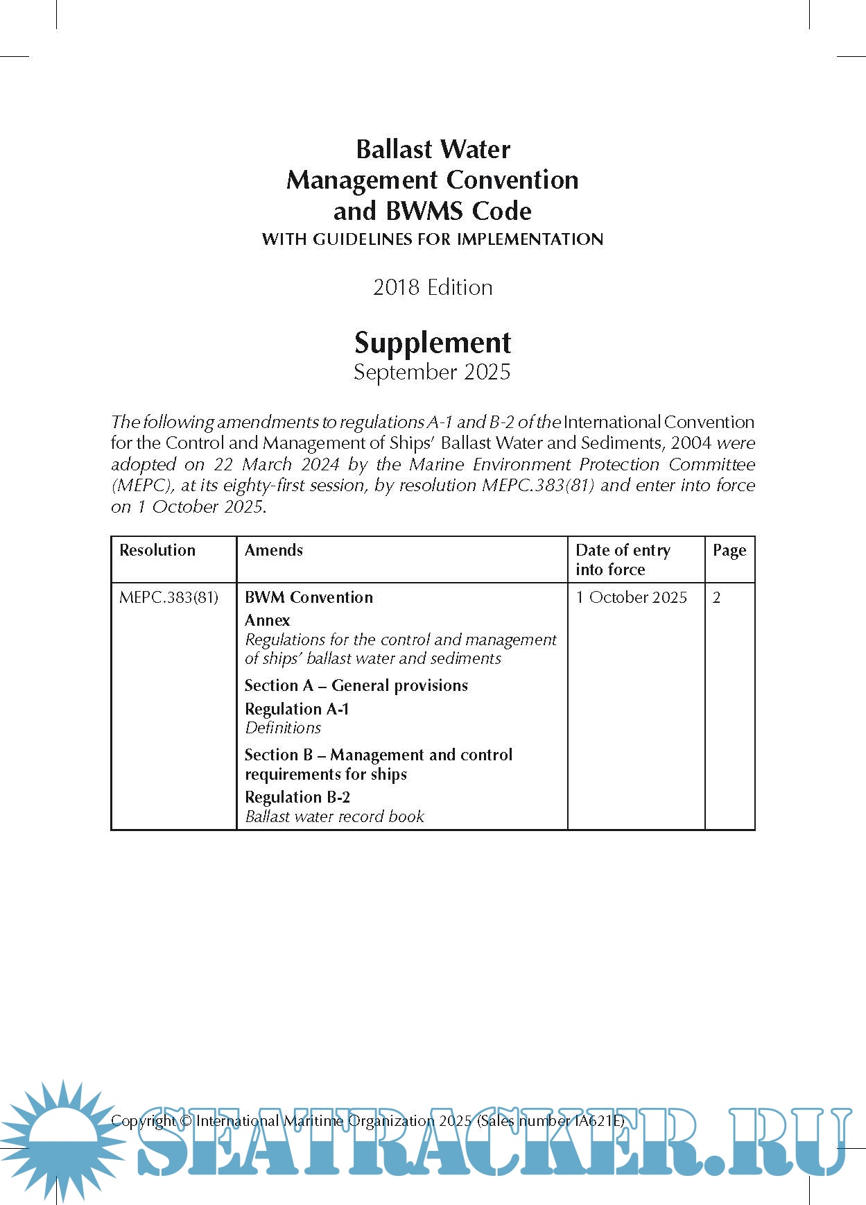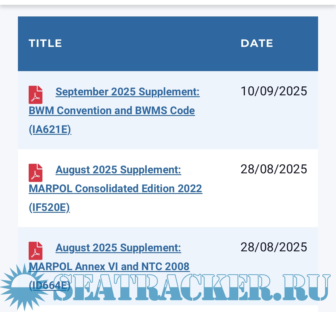Year: 2025 Language: English Author: IMO Genre: Convention (rules) Publisher: IMO Edition: August - September, 2025 Format: PDF Quality: eBook Pages count: Multiple Description: IMO Publications SupplementsOnly dated August - September, 2025. Download the relevant supplement, print it and insert it into your publication. Source: https://www.imo.org/en/publicat...ges/English.aspx
