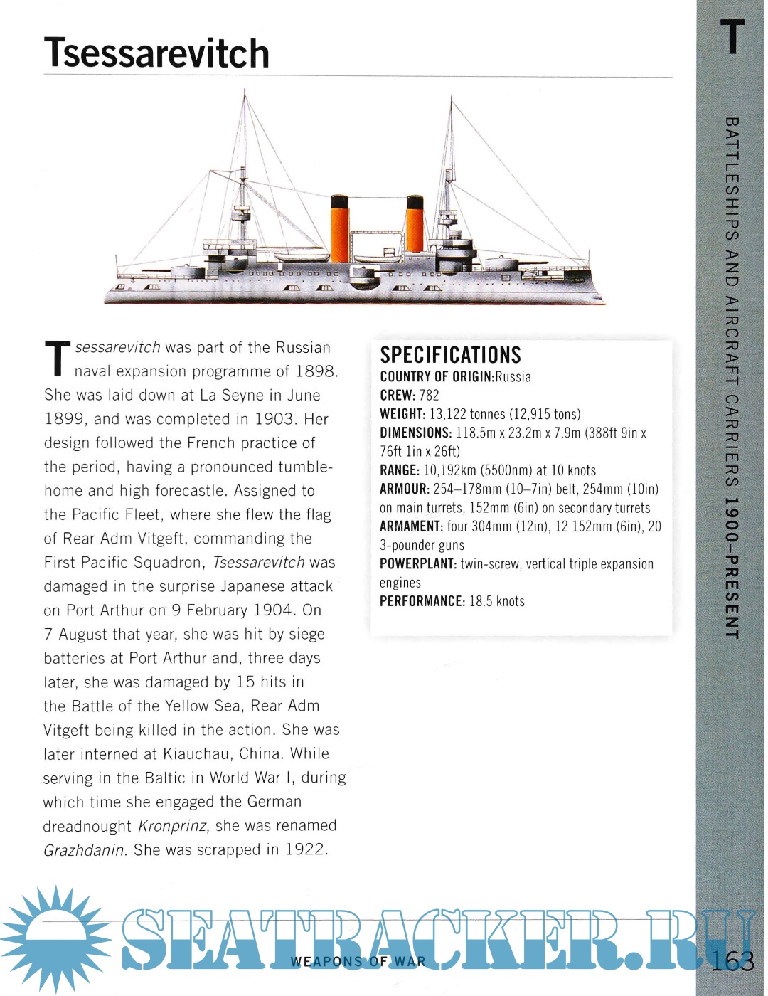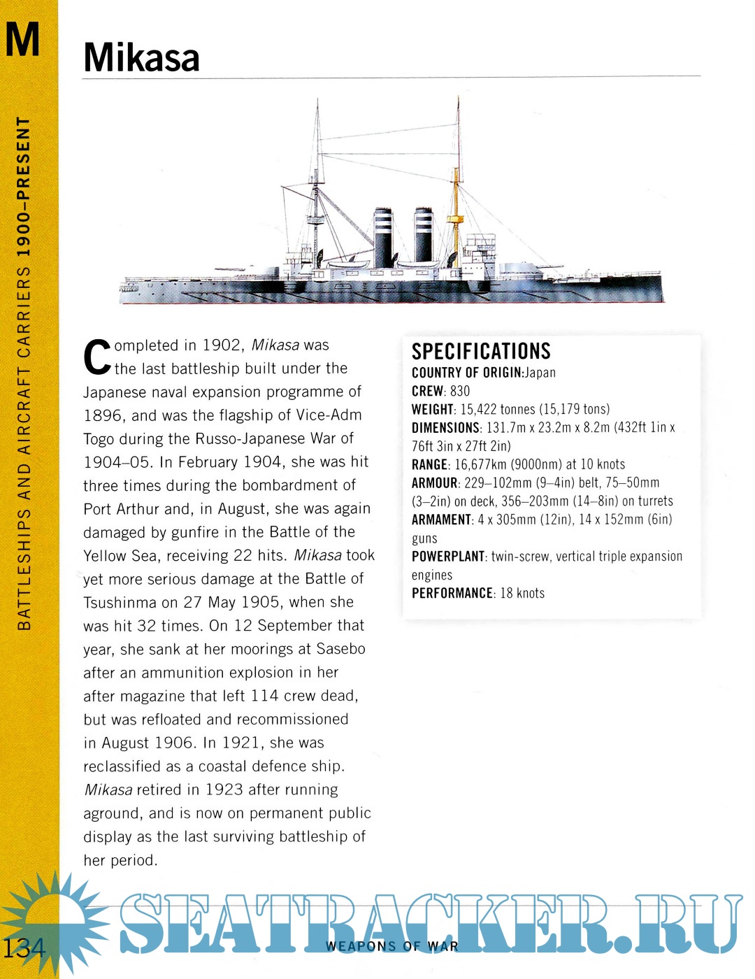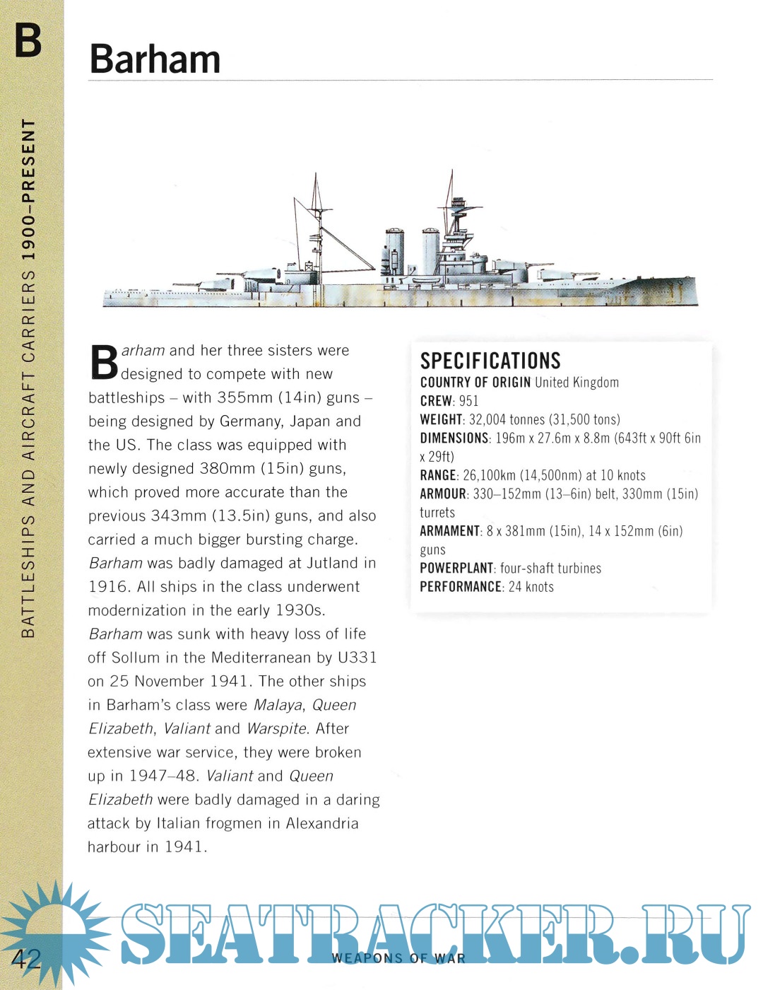 Year: 2013 Language: English Author: Spilling M. Genre: Guide Format: PDF Quality: eBook Pages count: 184 Description: Part of the Weapons of War series, this book features more than 150 color and black & white illustrations and photographs as well as detailed specifications of battleships and aircraft carriers from 1900 to the present. Battleships and Aircraft Carriers 1900–Present brings together the most important warships of the last 100 years in a single, handy volume arranged in alphabetical order. The book includes some of the great capital ships, such as the battleships Bismarck and Iowa, the carriers Enterprise and Formidable, and the missile destroyer Canberra. Features 150 entries of the most important weapons of the era Every weapon is illustrated with an accurate color artwork Each entry includes a specifications table with essential information such as armament, weight, speed, and range Concise text provides a summary of the design, development, service history, and performance of each weapon