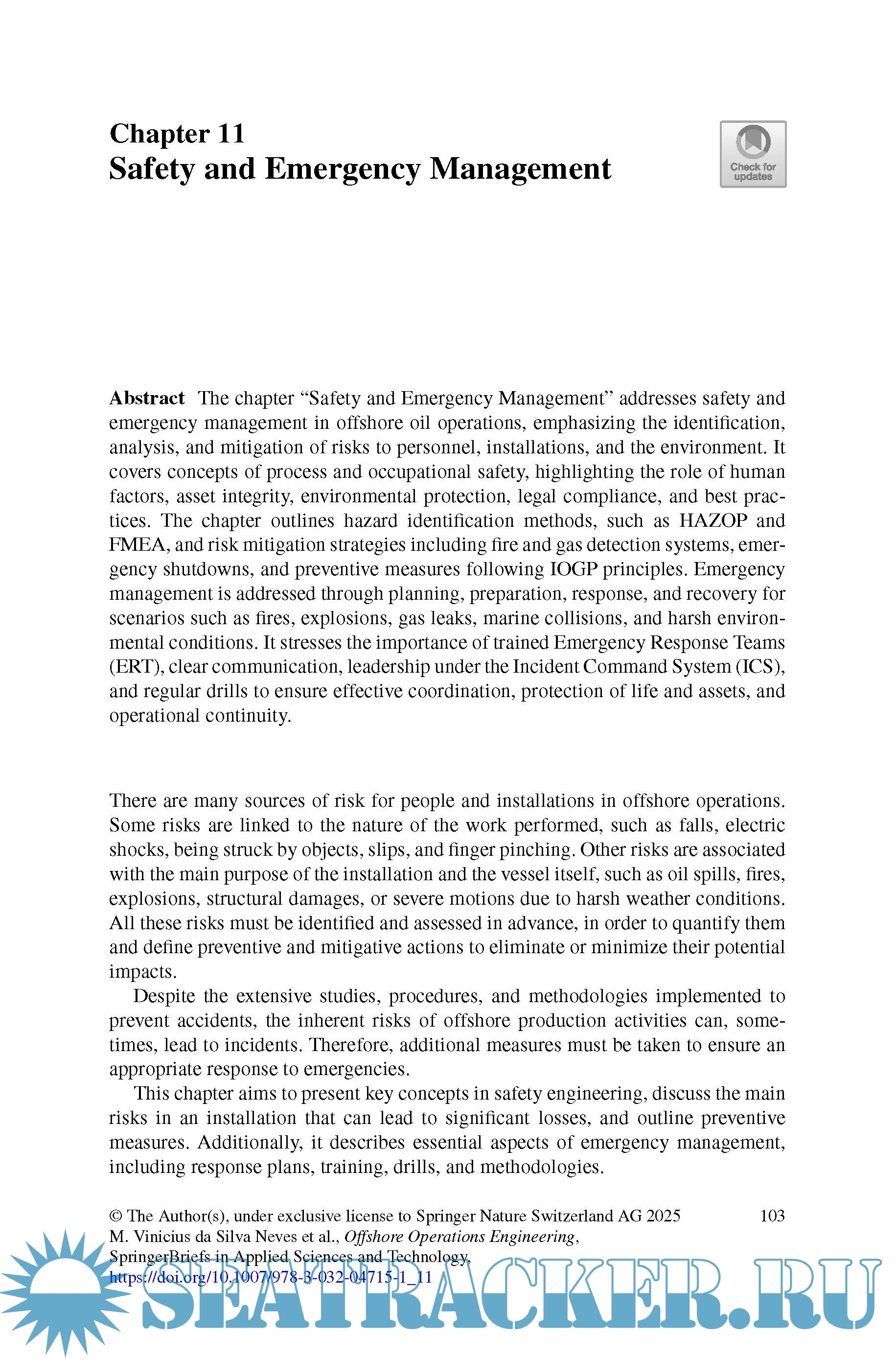 Description: This book offers a useful and accessible guide for offshore workers operating in oil production facilities. It explores the unique challenges of the offshore environment including strong currents, corrosive conditions, and structural demands and provides essential knowledge on platform stability, vessel navigation, and legal compliance. Covering the full life cycle of offshore installations from planning to decommissioning, the book emphasizes safety, emergency management, and includes real-world information to support learning and application.