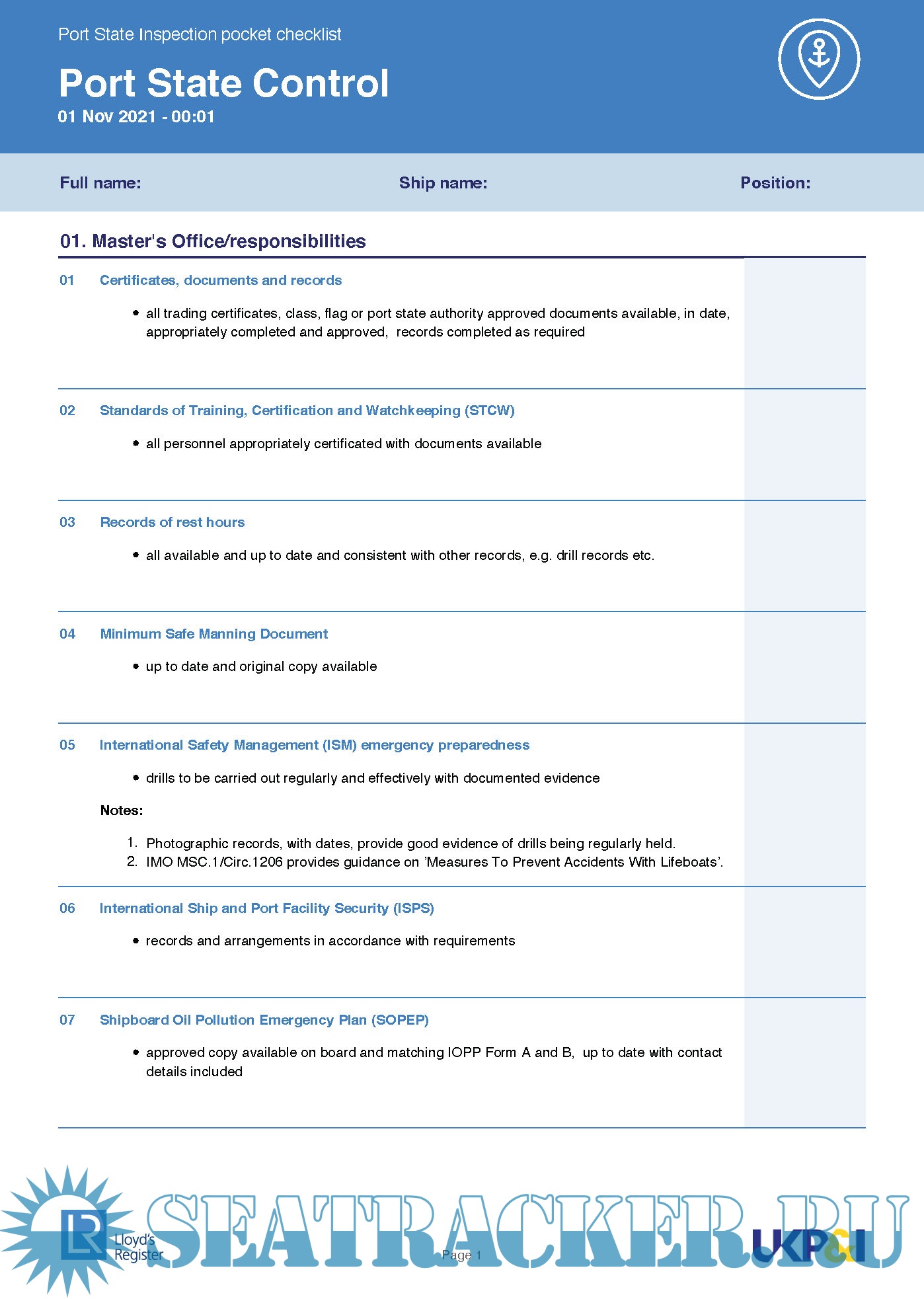 Year: 2021 Language: english Author: Lloyd’s Register and UK P&I Club Format: PDF Quality: eBook Pages count: Multiple Description: Revised pocket checklist app brings together all ships’ checklists into one place. LR and UK P&I Club have released a new and improved Port State Control (PSC) checklist app. The app helps ensure that ship personnel are trained in how to inspect, maintain and operate life-saving equipment, and that equipment is ready for use at all times. The app also includes a list of common deficiencies to ensure compliance with regulatory requirements and help reduce the risk of PSC detentions. The full list of checklists featured include ILO MLC, ISM & ISPS, Life Saving Appliances, Marine Fire Safety, Marine Pollution Prevention and Port State Control into one, easy-to-use app. Checklists on the new and improved app are continuously updated to reflect new or amended legislation as it comes into force, so users remain up to date. The PSC pocket checklist app is available now for free on iPhone, iPad and Android devices.