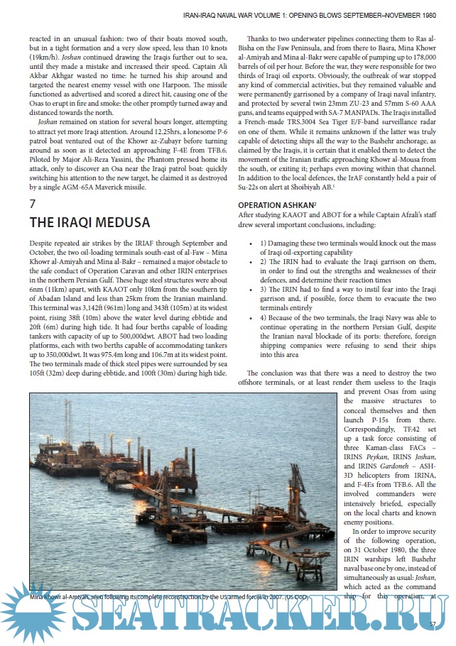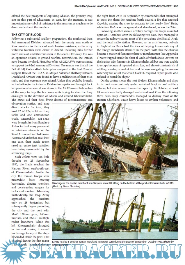 Description: The first part of this work is devoted to naval combat during the Iran-Iraq War, 1980-1988. It examines the state of the navies of these countries before the war, their plans of action, and the onset of hostilities.-Первая часть работы посвященной боевым действиям на море в ходе ирано-иракской войны, 1980-1988. В ней рассмотрены состояние флотов этих стран перед войной, планы действий и начало боевых действий.
