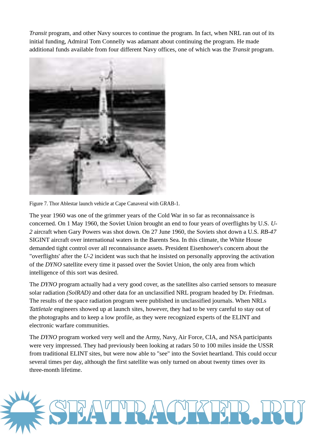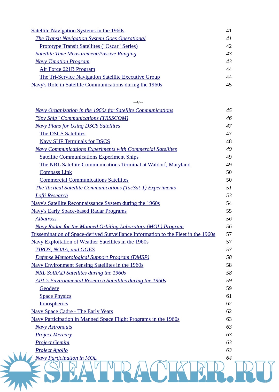 operations of the Fleet, Fleet Marine Forces, and U.S. Space Command, until the system was turned over to the U.S. Air Force in 2004. In the early 1960s, while the Air Force and Central Intelligence Agency concentrated primarily on imagery from space, the Navy built and operated the world's first satellite system for collecting electronic intelligence. Throughout the 1960s, the Navy and Marine Corps provided the majority of astronauts for NASA's manned space flight program, and during this period the Navy also launched Transit, the world's first satellite navigation system that provided U.S. and Allied navies, and eventually the world's merchant ships, with primary navigation support until the appearance of the jointly acquired Global Positioning System.