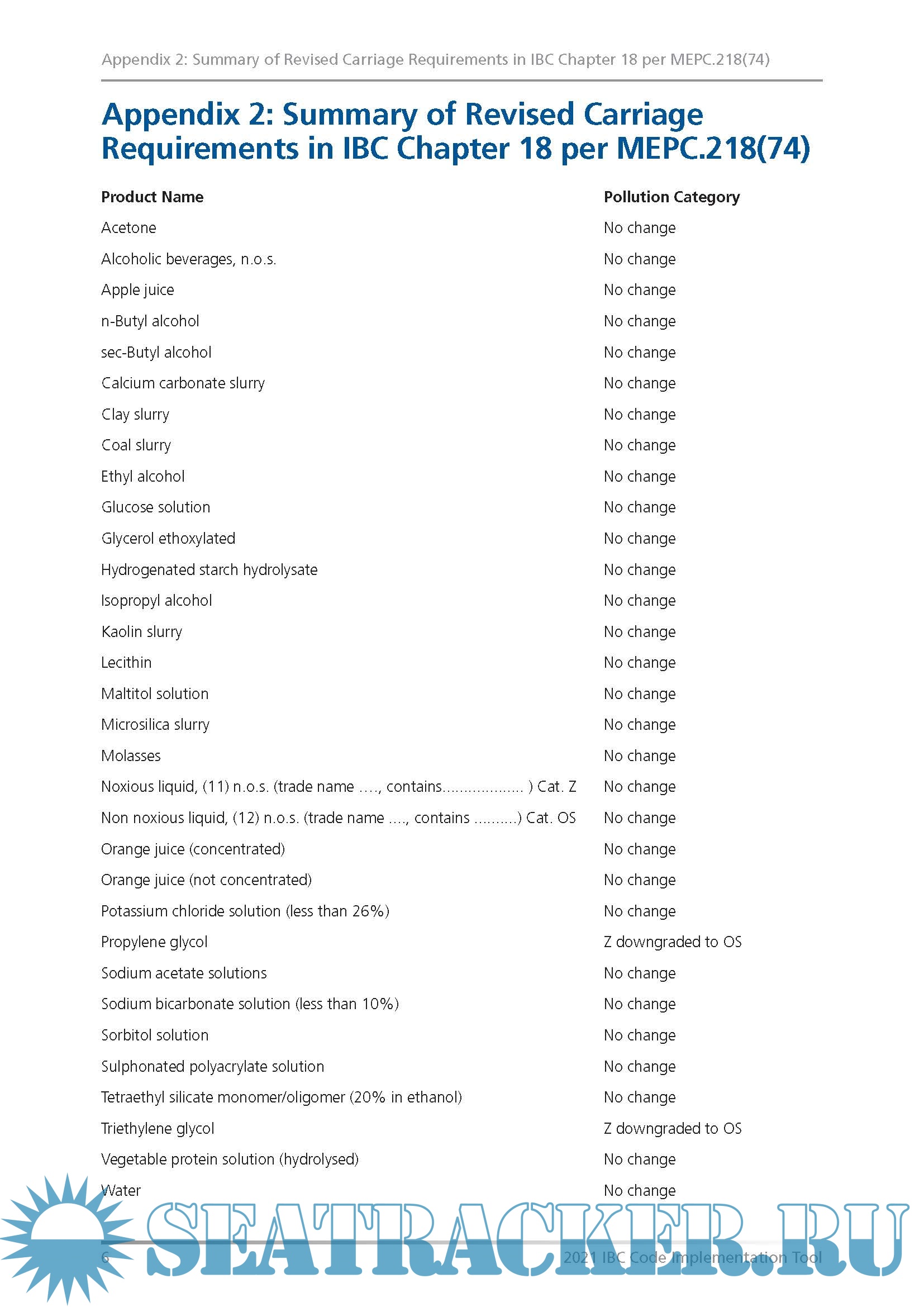 • Appendix 4 captures some of the most relevant changes to the IBC Code and contains lists of products representing the most significant changes.